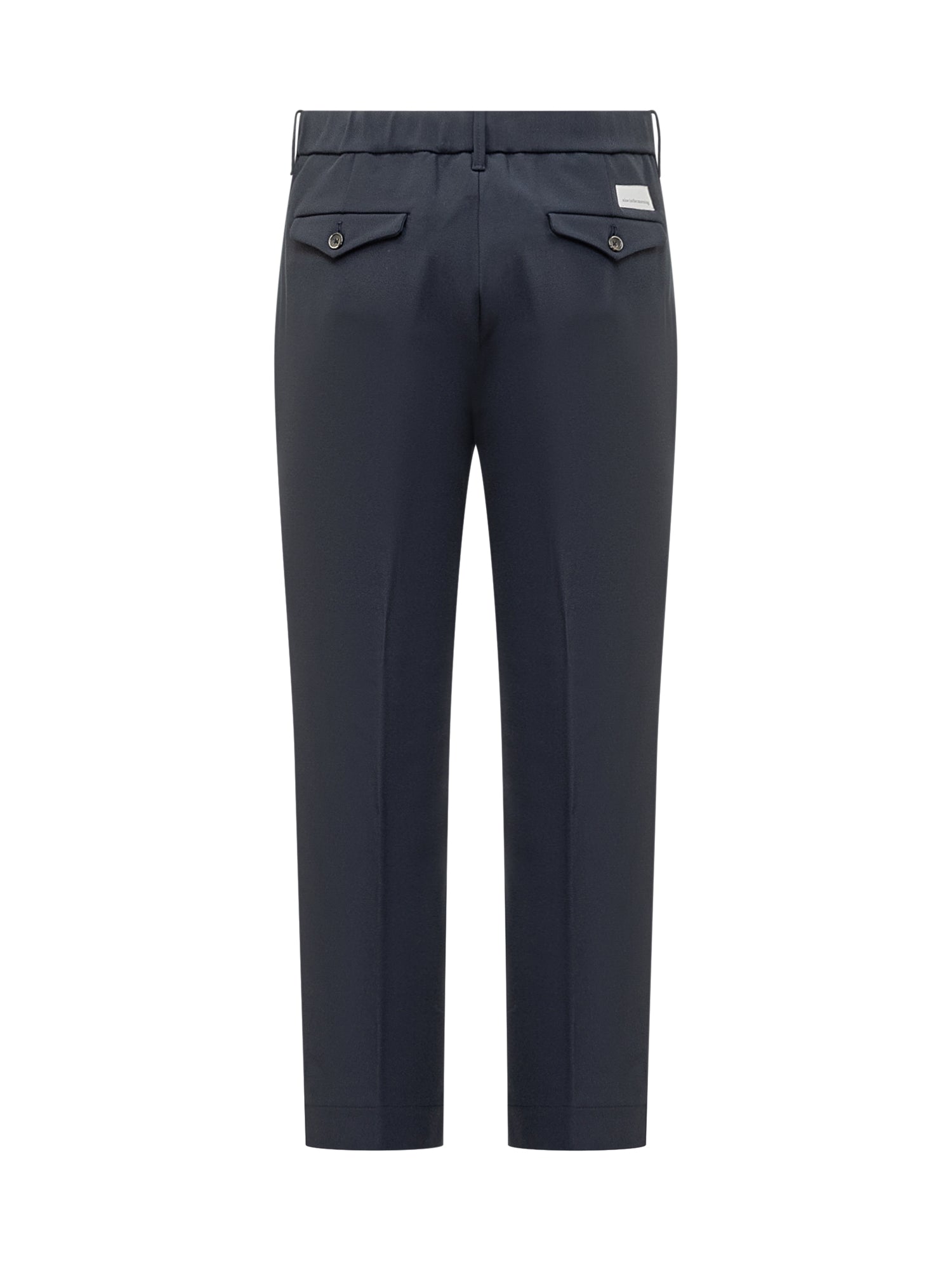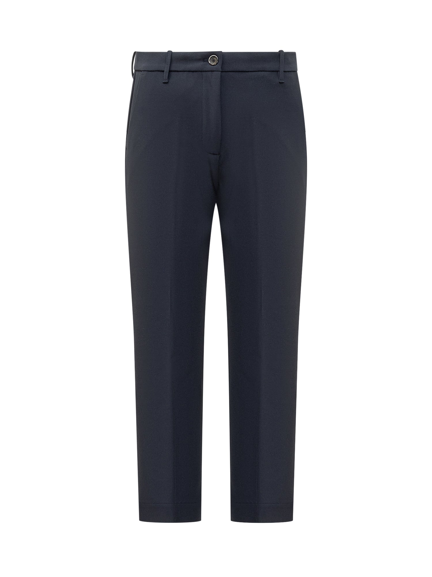 Bootcut pants. Zipper and button closure. Belt loops. Four pockets. Embroidered logo on the back.