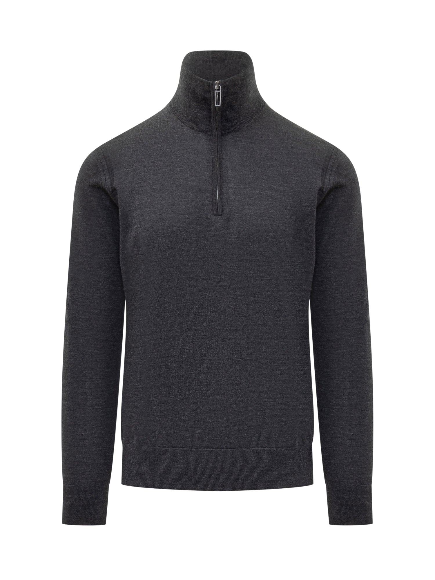 Paolo Pecora grey wool sweater featuring a high collar and half-zip closure.