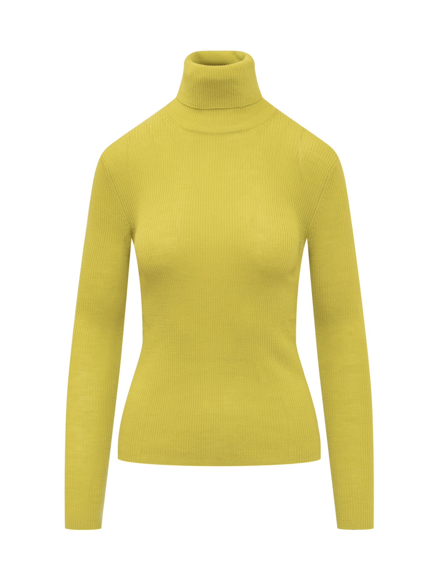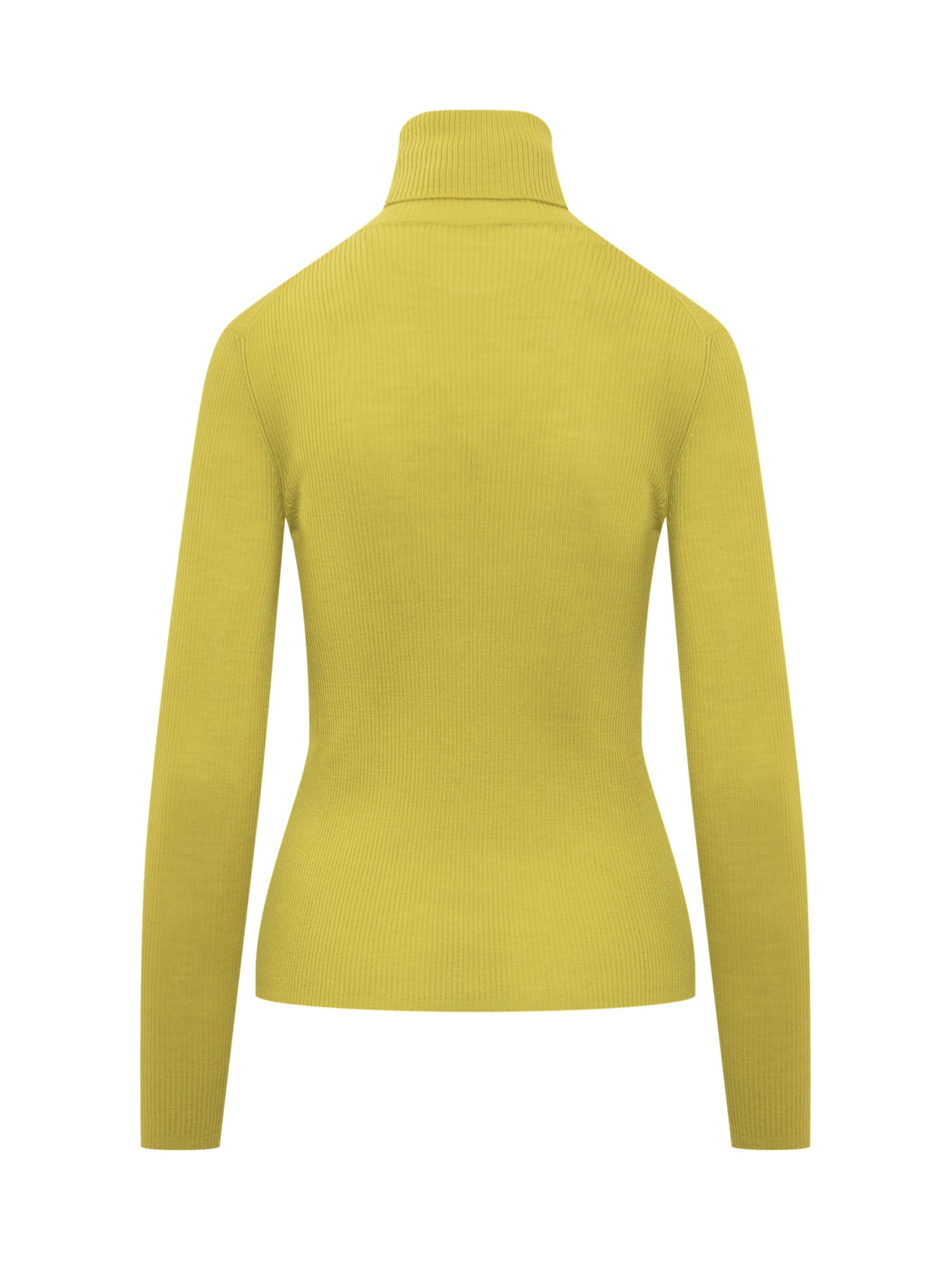 Yellow sweater with long sleeves. Turtleneck. All-over ribs.