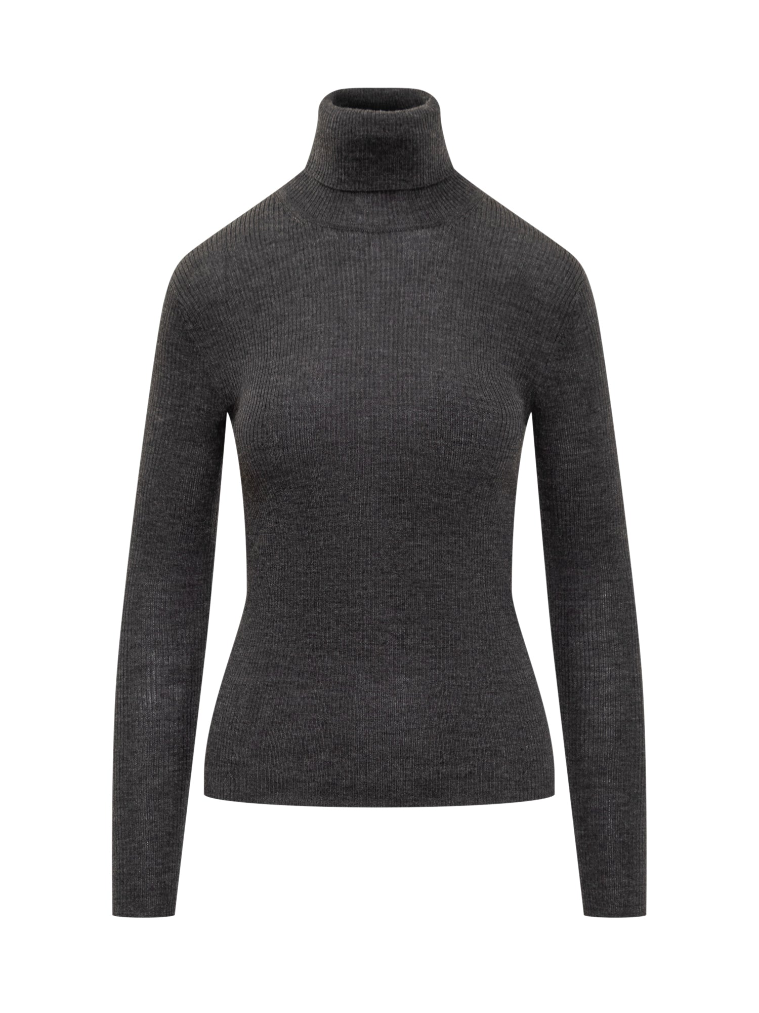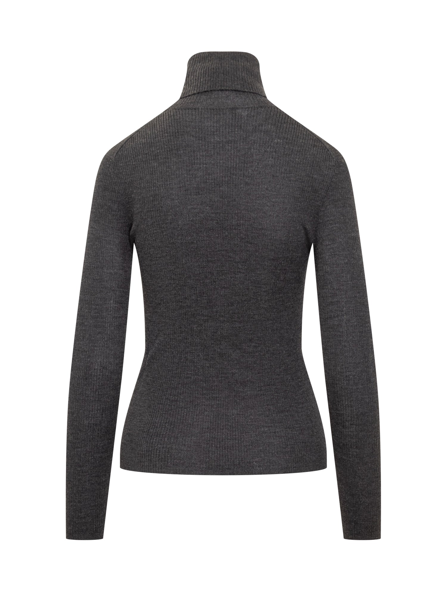 Grey sweater with long sleeves. Turtleneck. All-over ribs.
