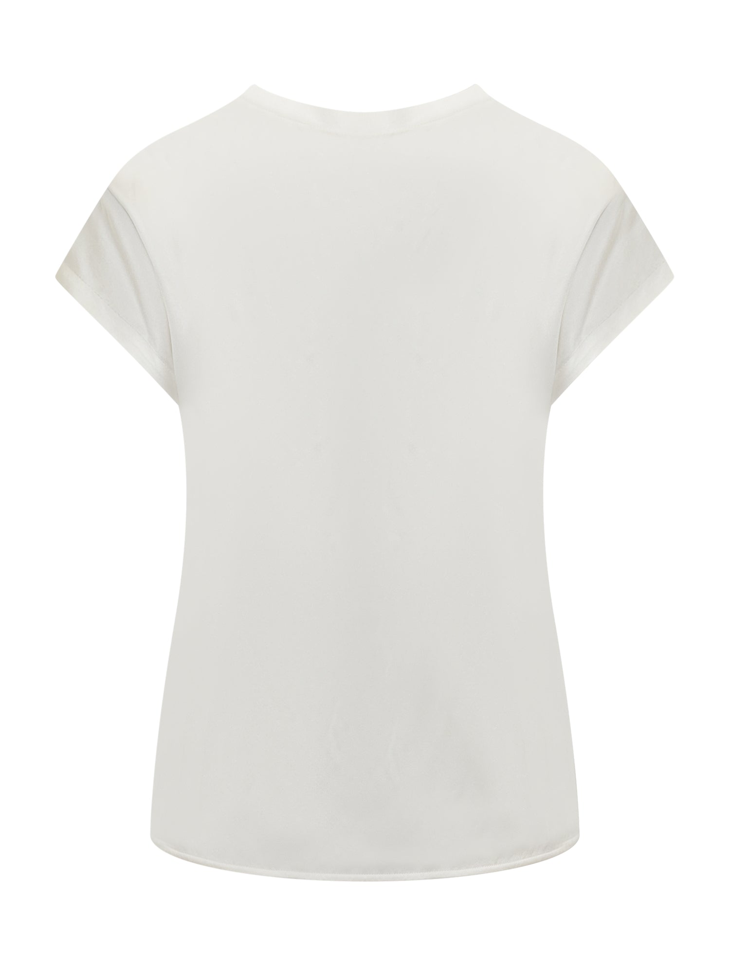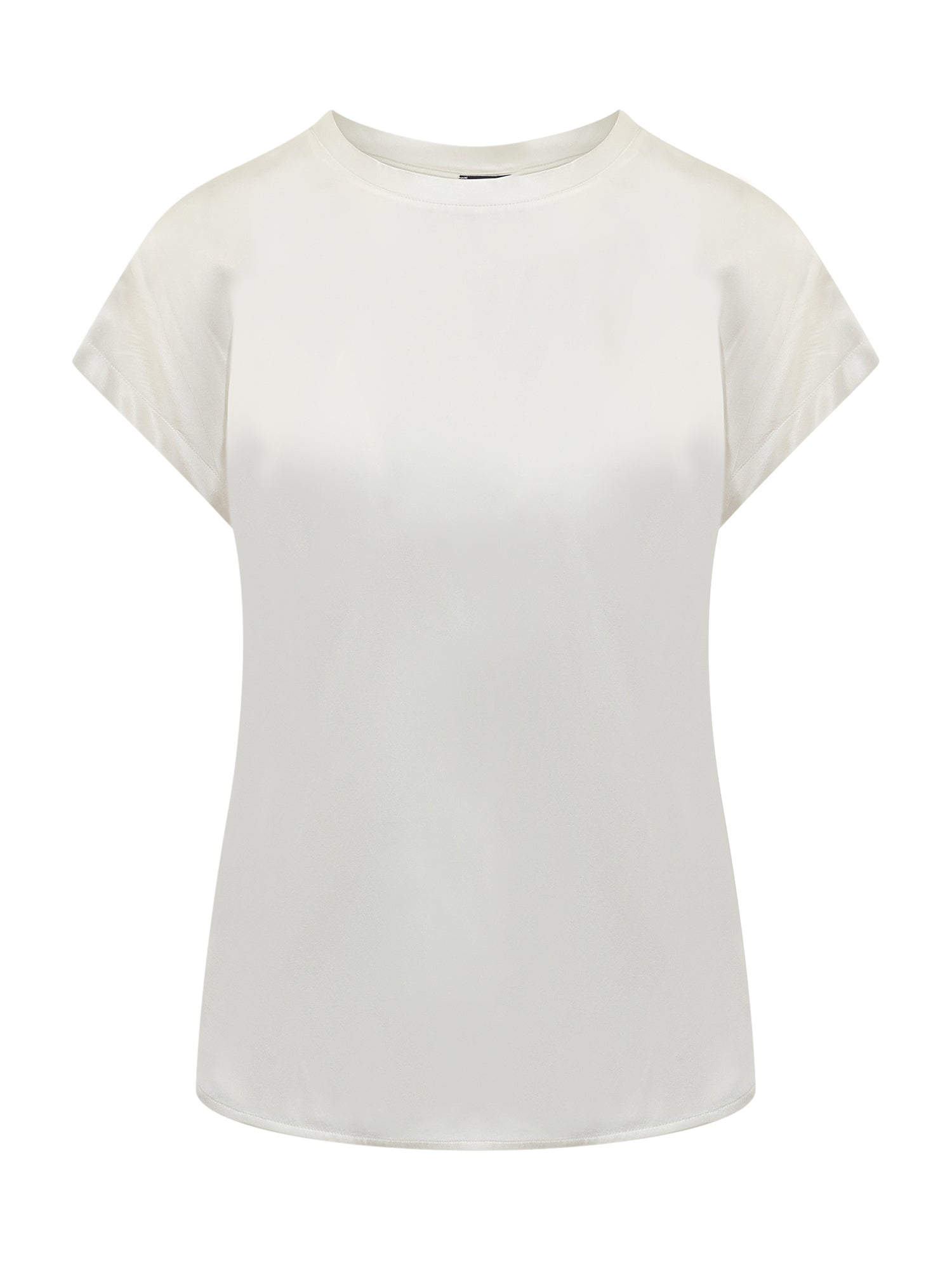 White silk blouse. Short sleeves. Round neck.