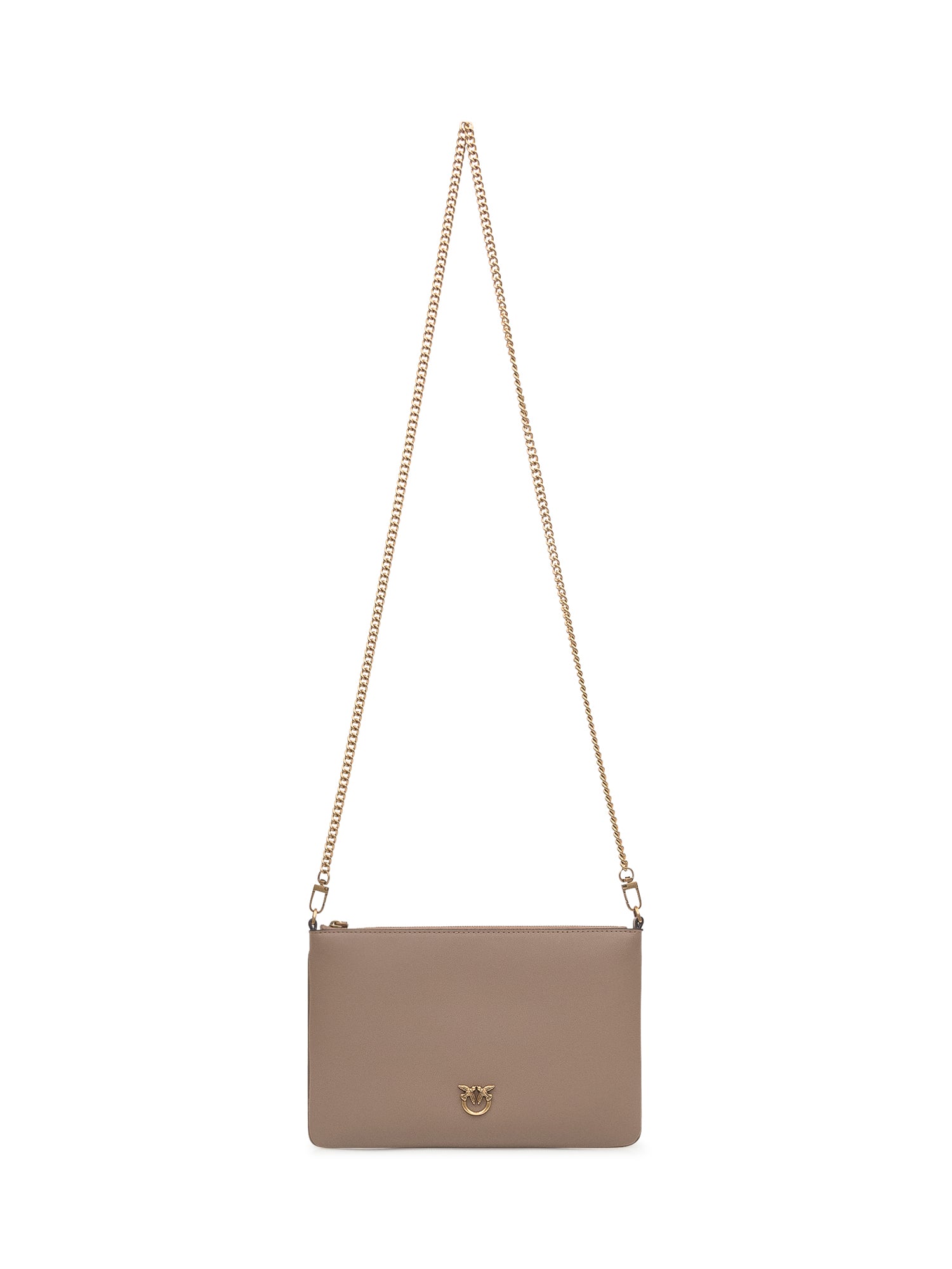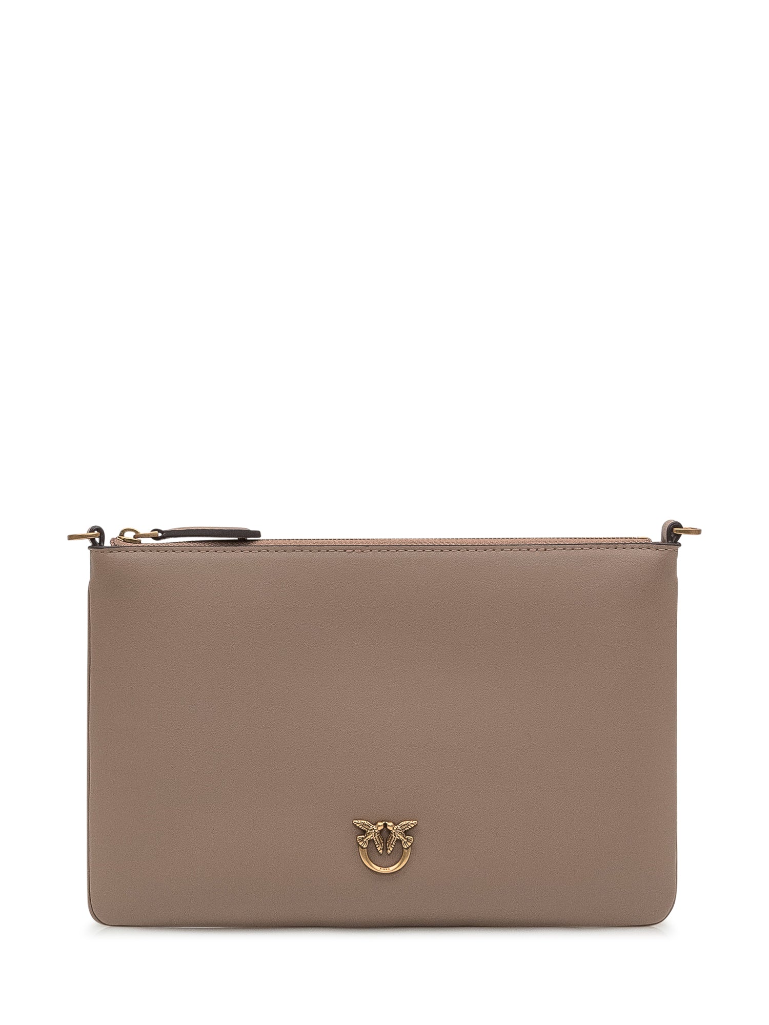 Pinko Love Mini Icon Simply clutch in smooth taupe leather with gold Love Birds logo.