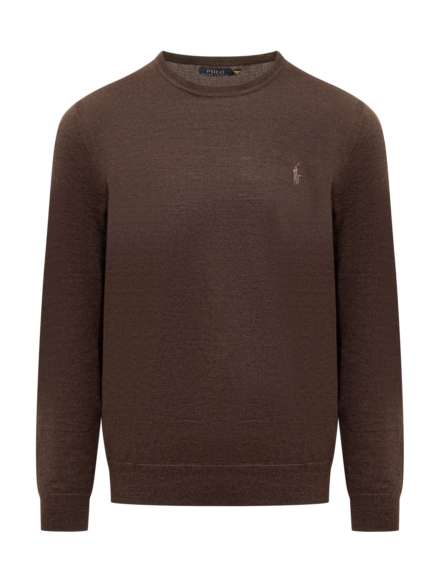 Long sleeve crew neck pullover. Ribbed hems. Embroidered logo on front.