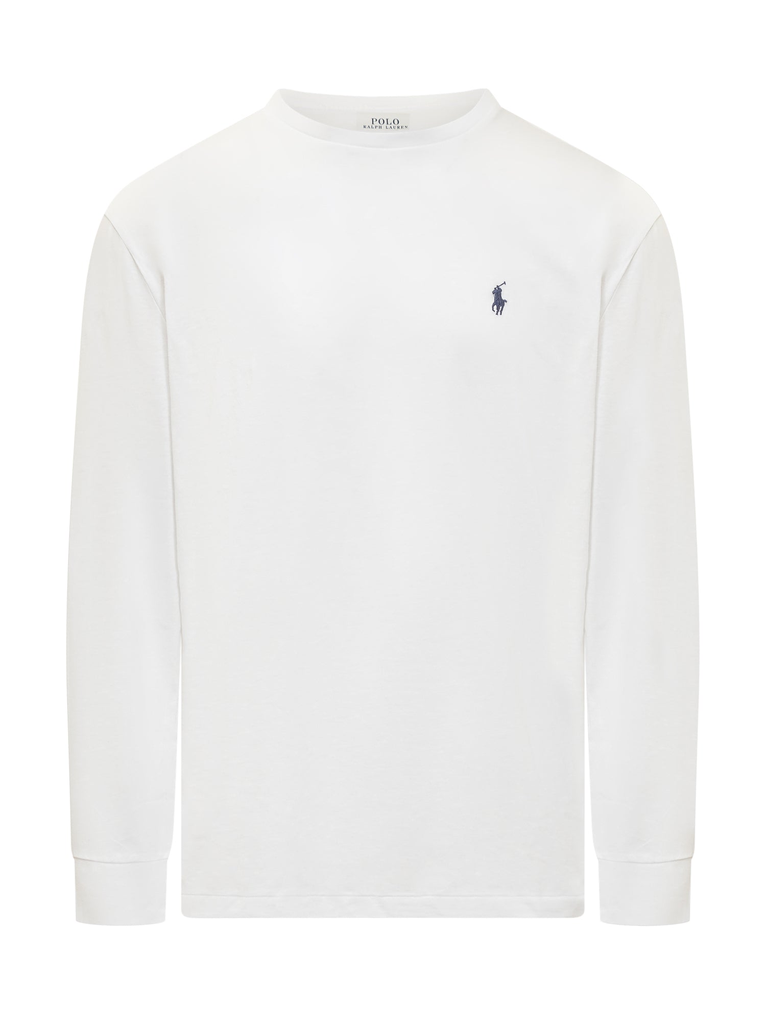 Crew-neck T-shirt. Long sleeves. Logo on chest. White color.