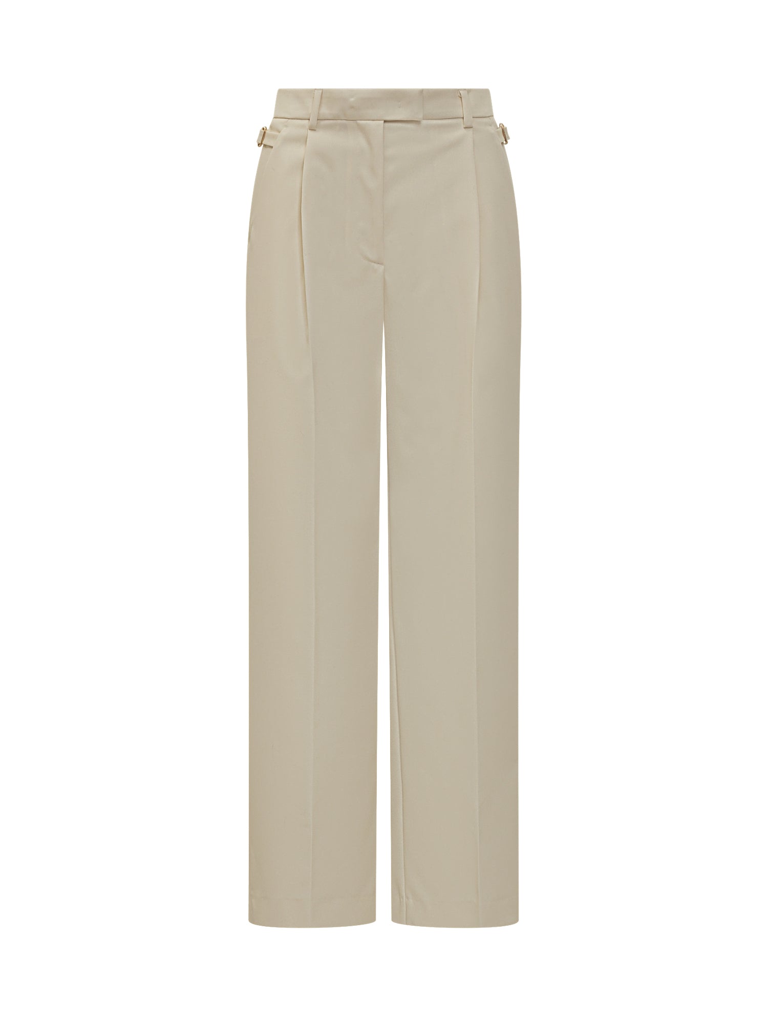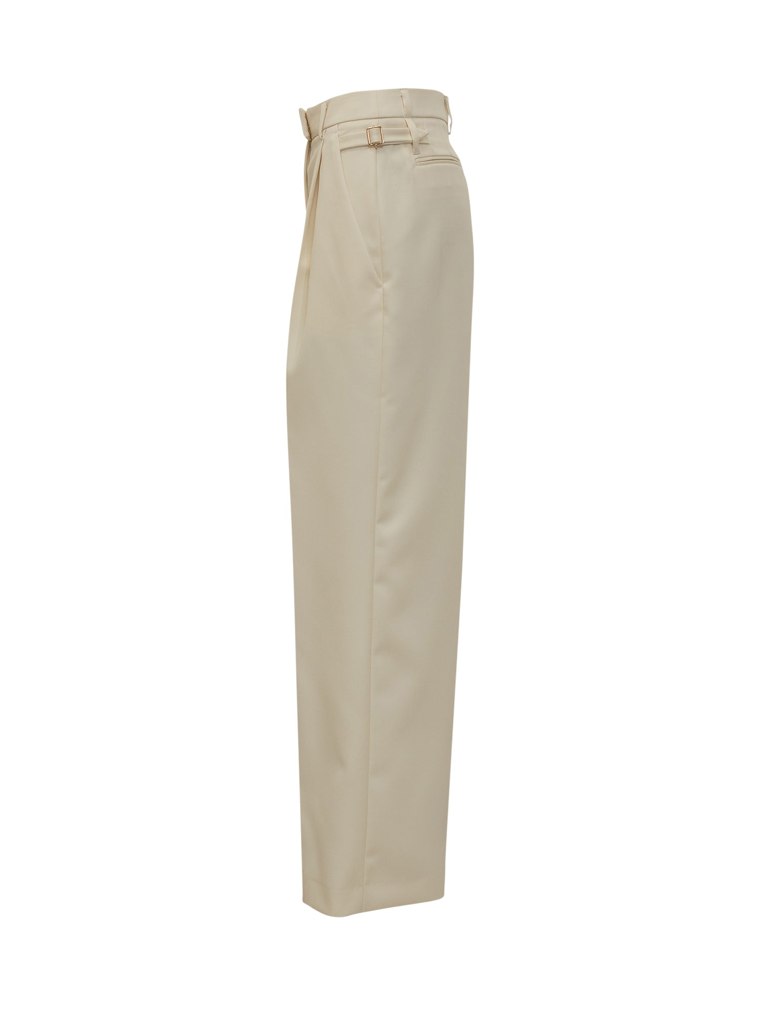 PT Torino beige wide-leg trousers with central pleat and high waist.