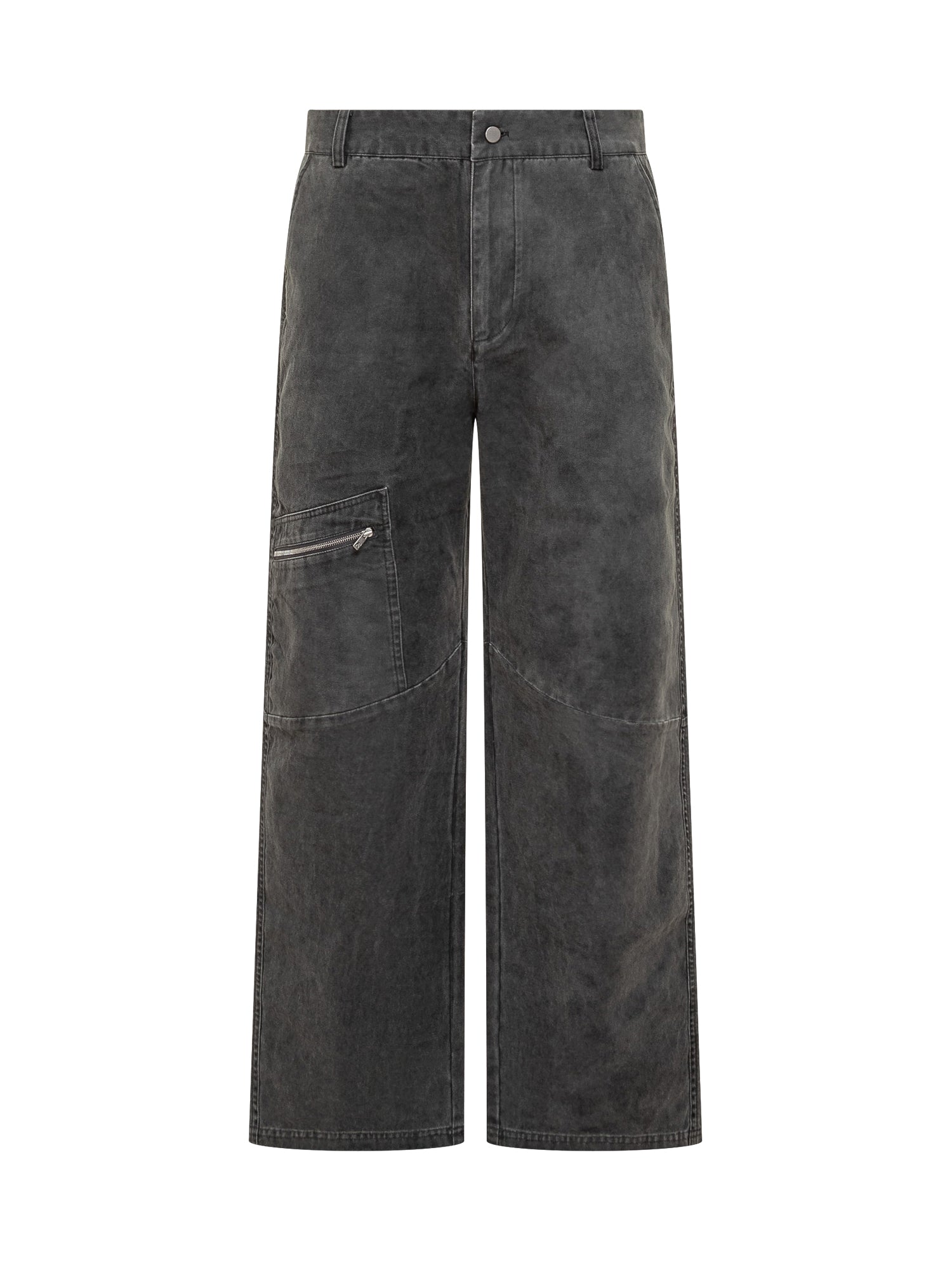Grey washed denim jeans by Represent with wide fit and side cargo pocket with zip.