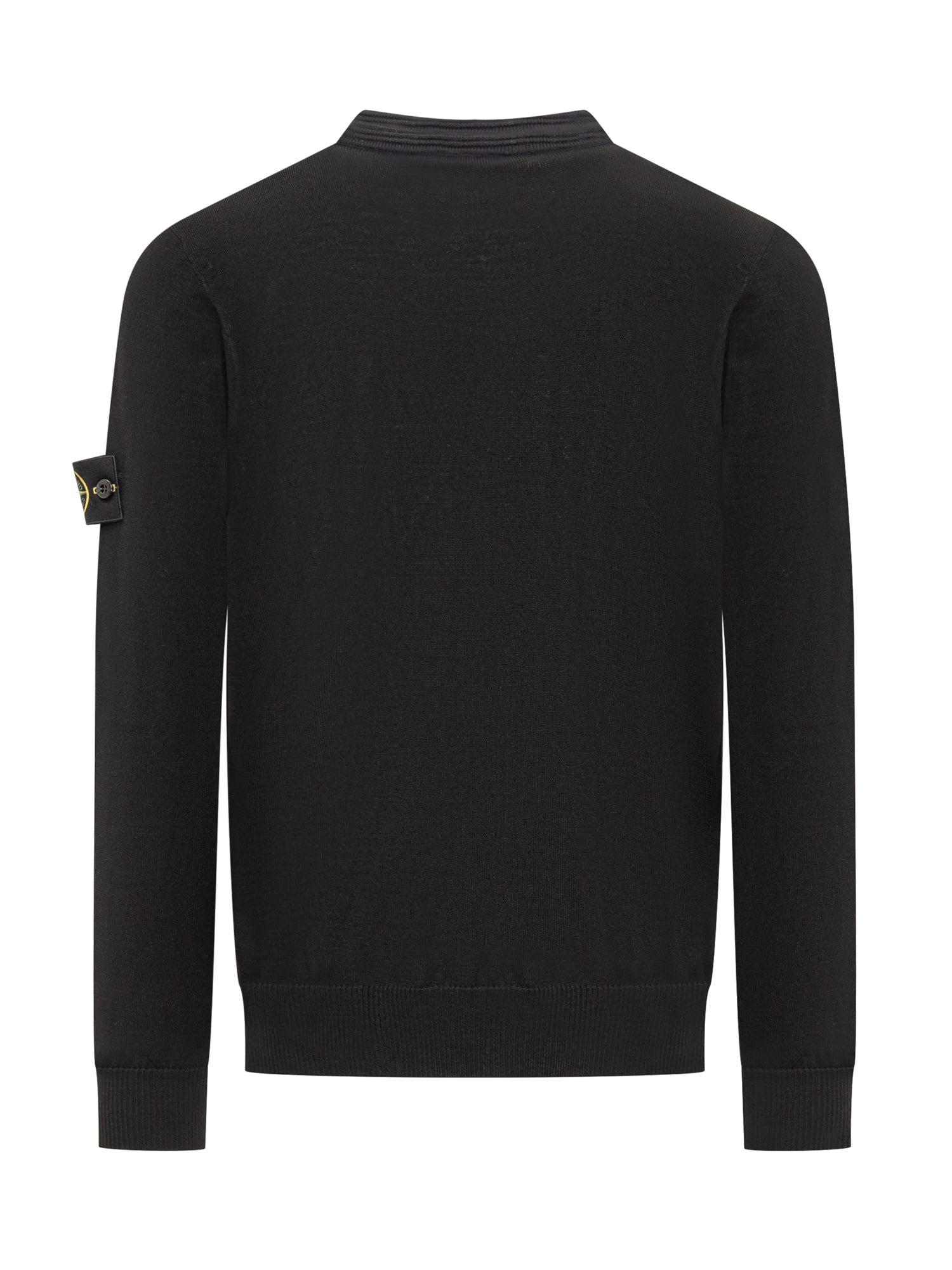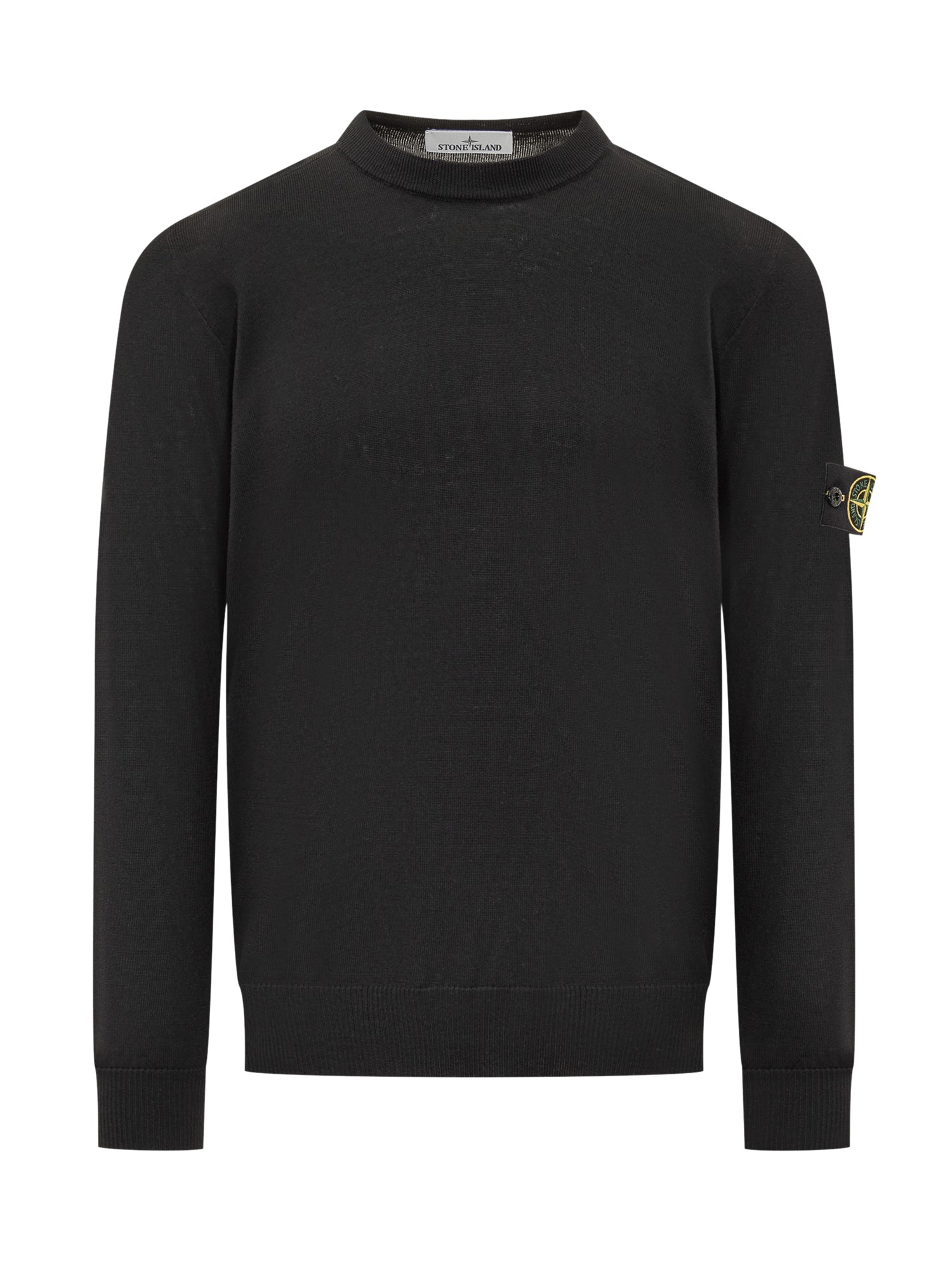 Stone Island crew neck sweater in wool, featuring a clean design and the iconic sleeve badge.