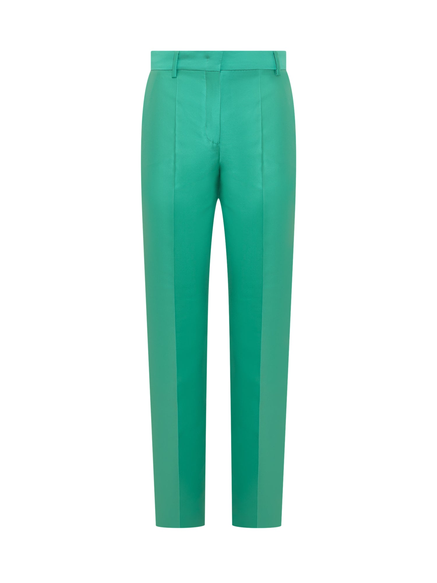 Long trousers. Zip and hook closure. Two pockets. Belt loops.