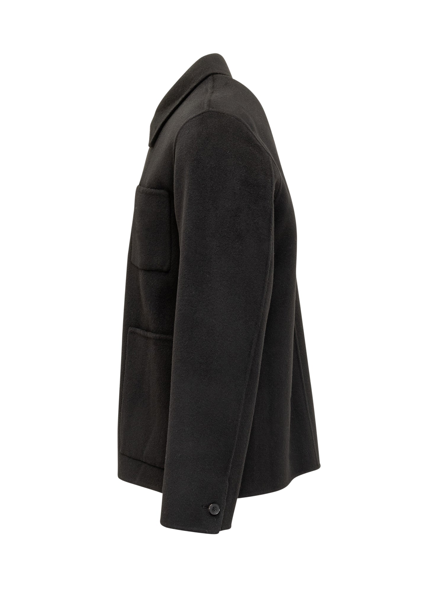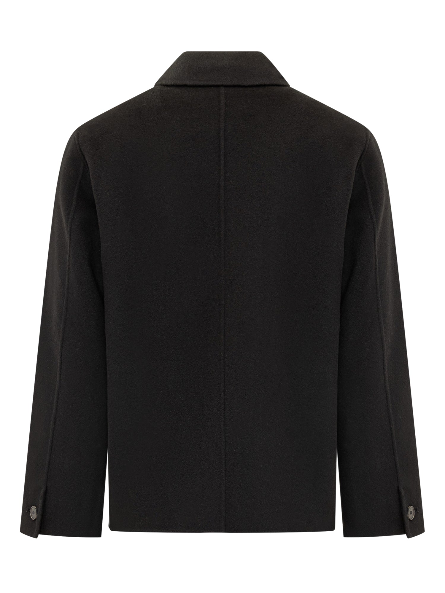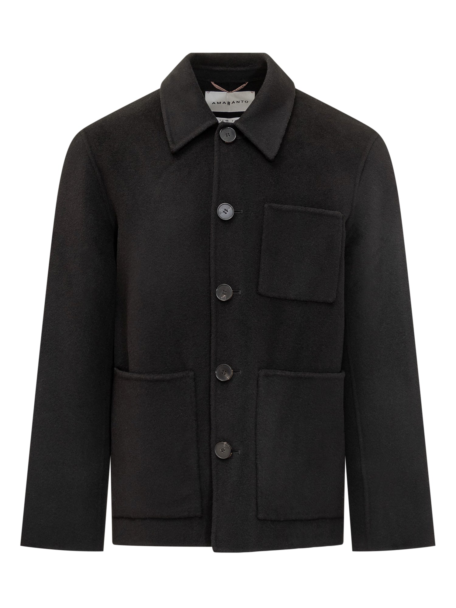 Amaranto black wool jacket with classic collar, button closure and applied pockets.