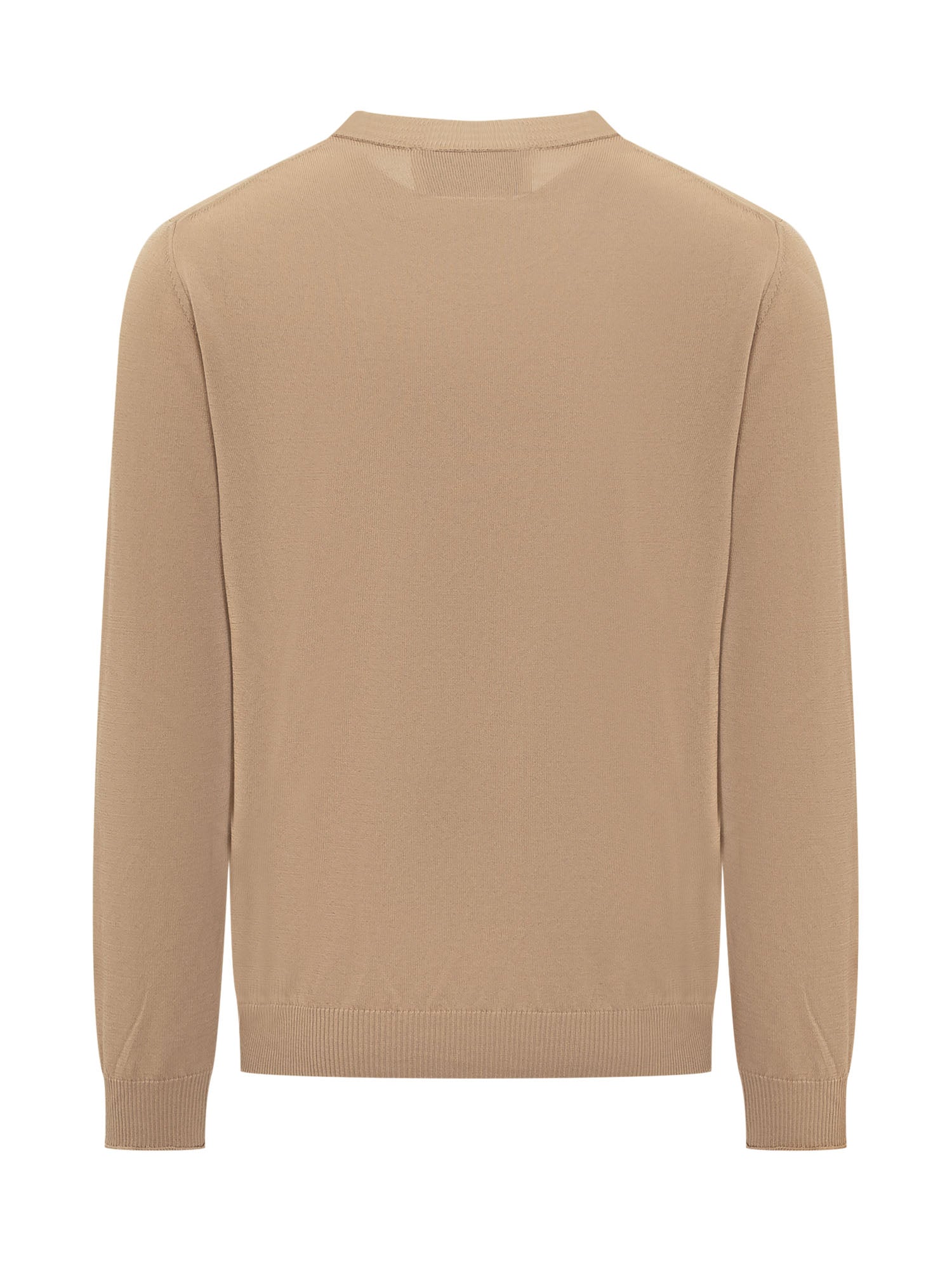 Long-sleeved cotton sweater. Crew neck. Ribbed hems. Logo patch on front.
