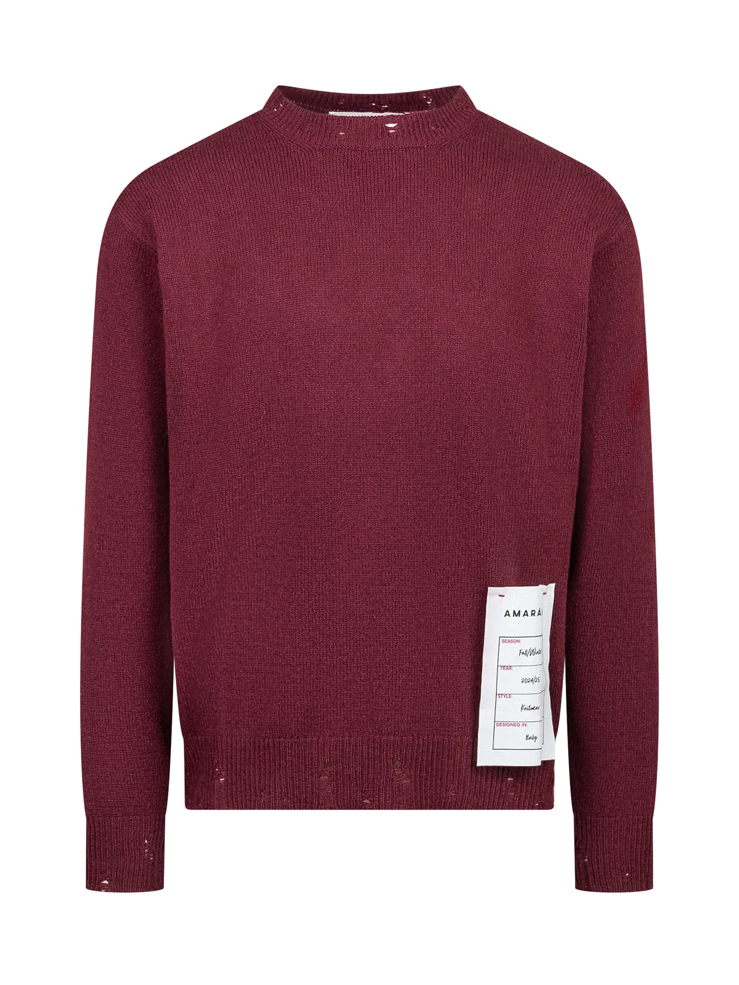 Crew-neck sweater. Ribbed hems with ruined effect.