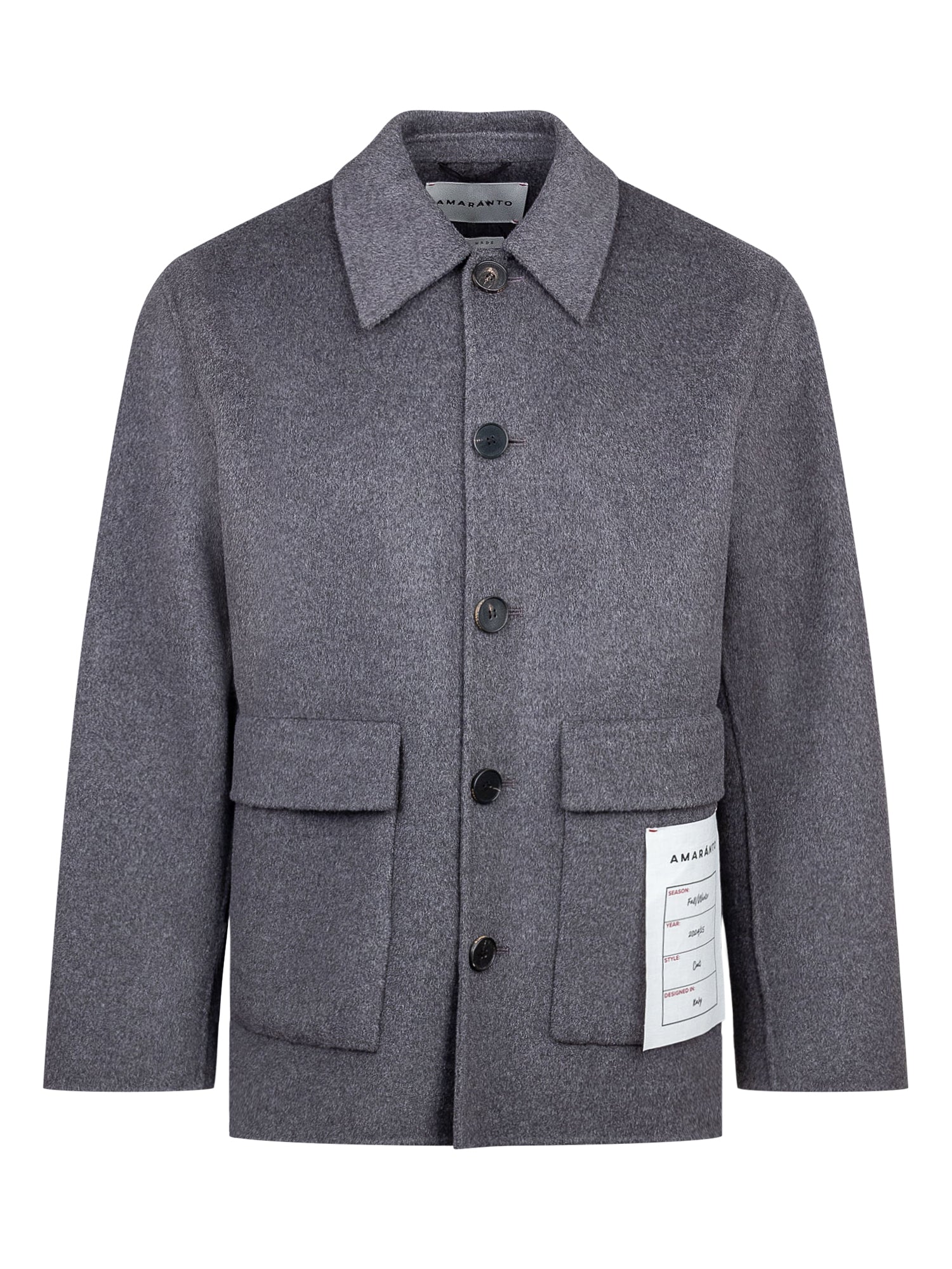 Over shirt with classic collar. Button closure. Two side pockets.