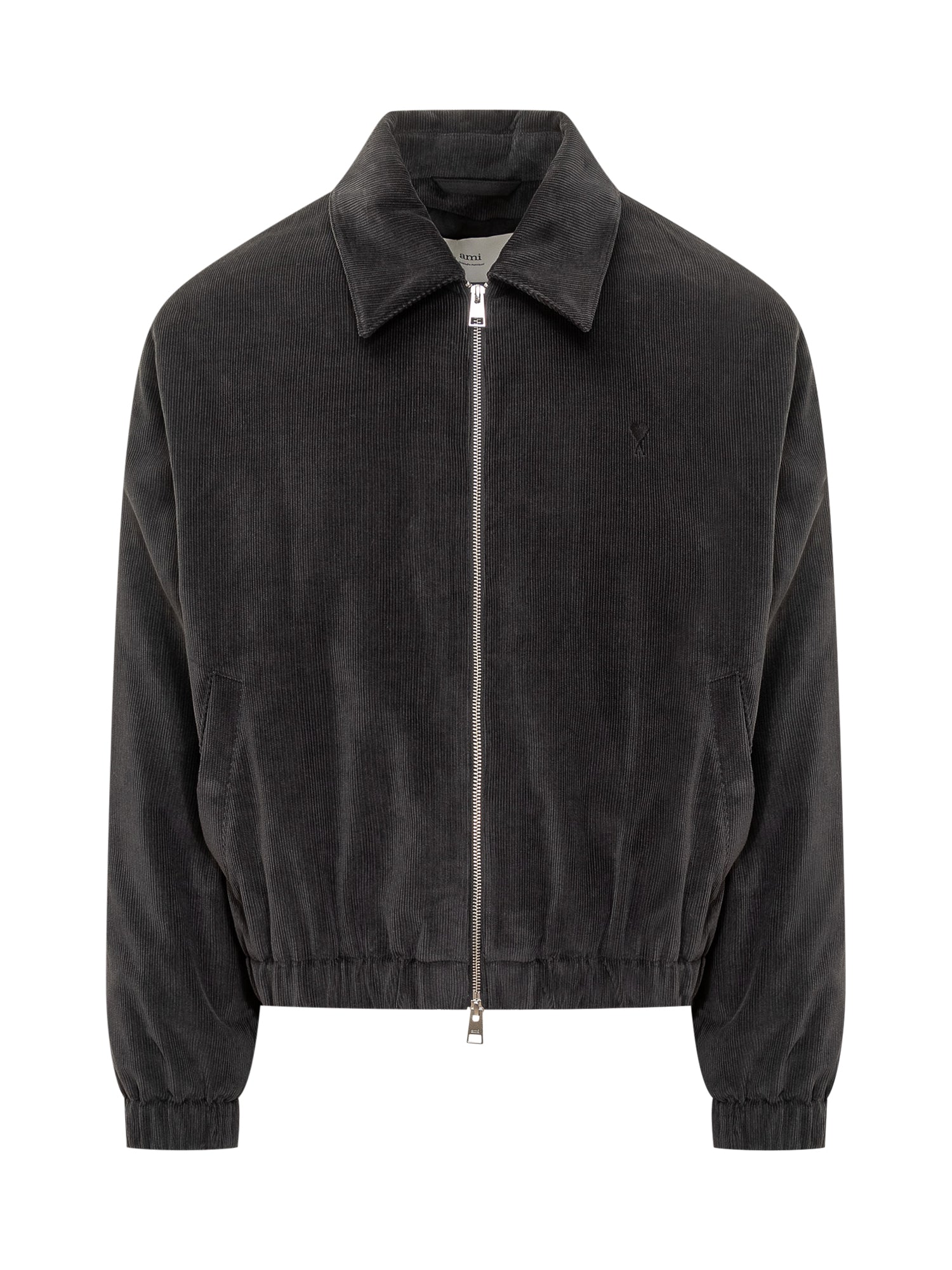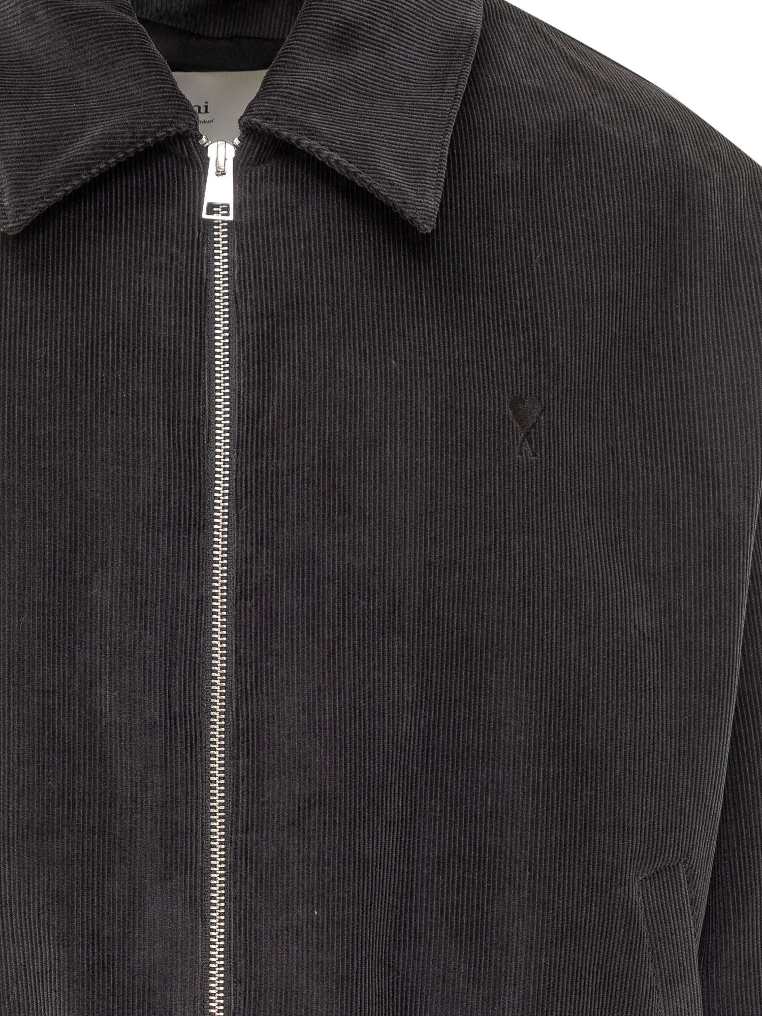 Black corduroy jacket by Ami Alexandre Mattiussi, featuring zip closure, classic collar and elasticated hem.