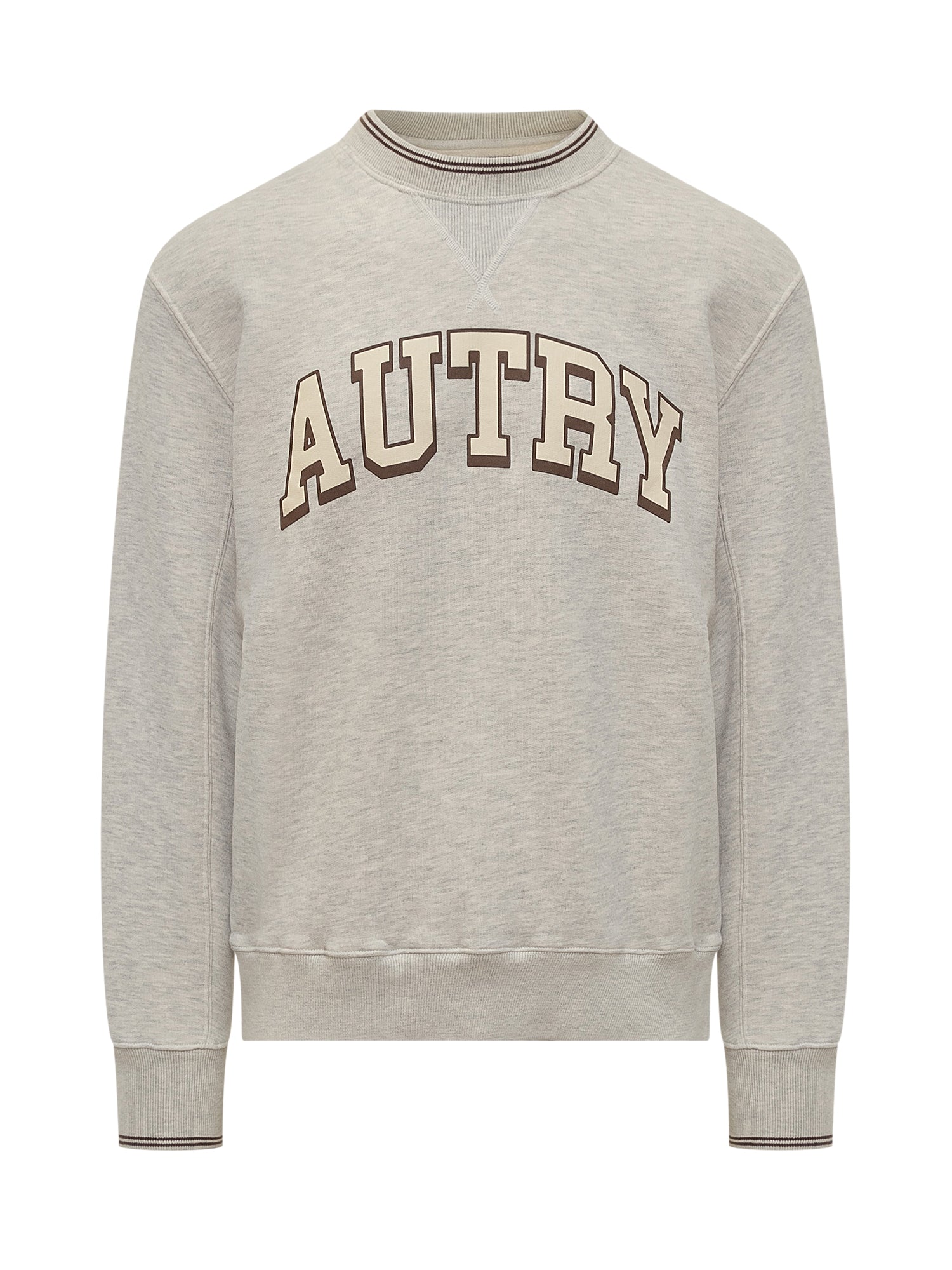 Grey cotton sweatshirt. Crew neck. Logo print. Ribbed collar, cuffs and hem.