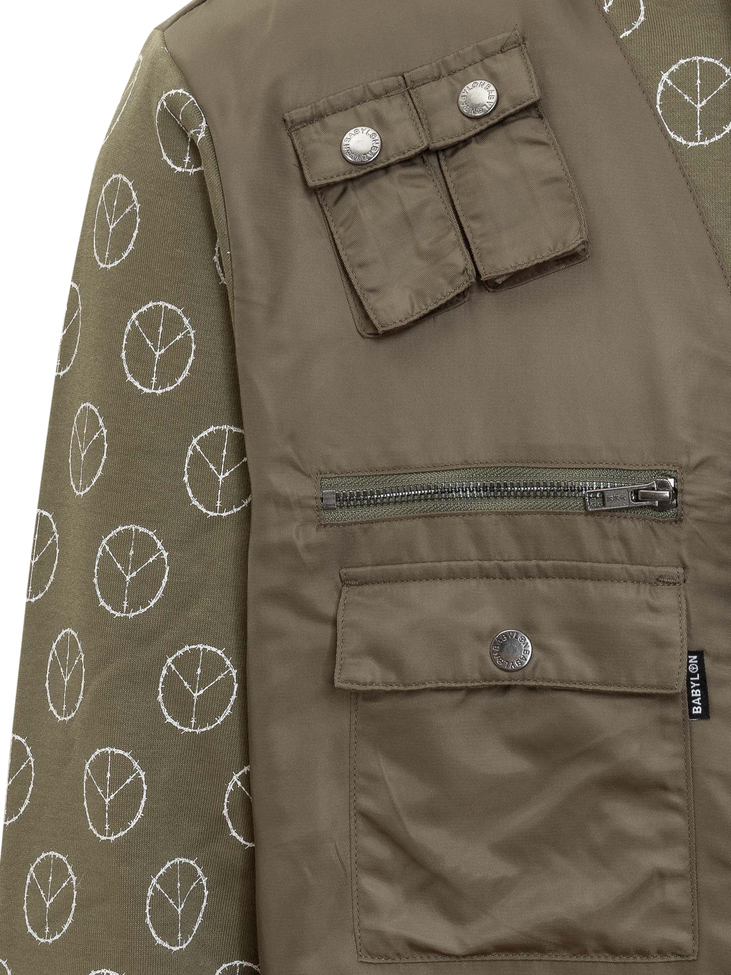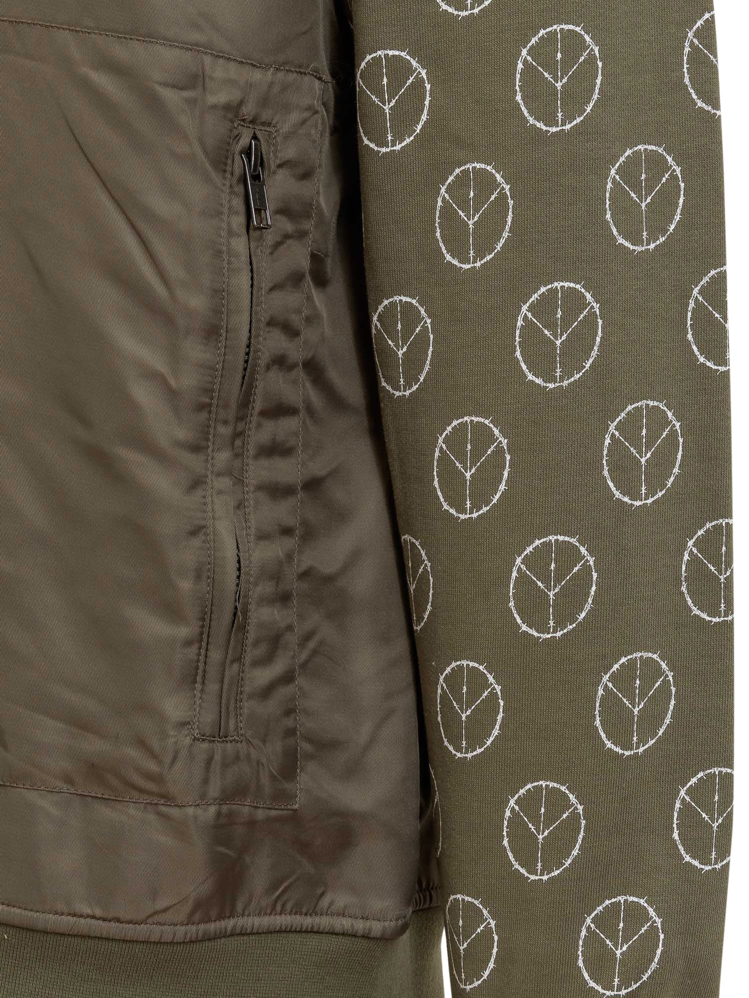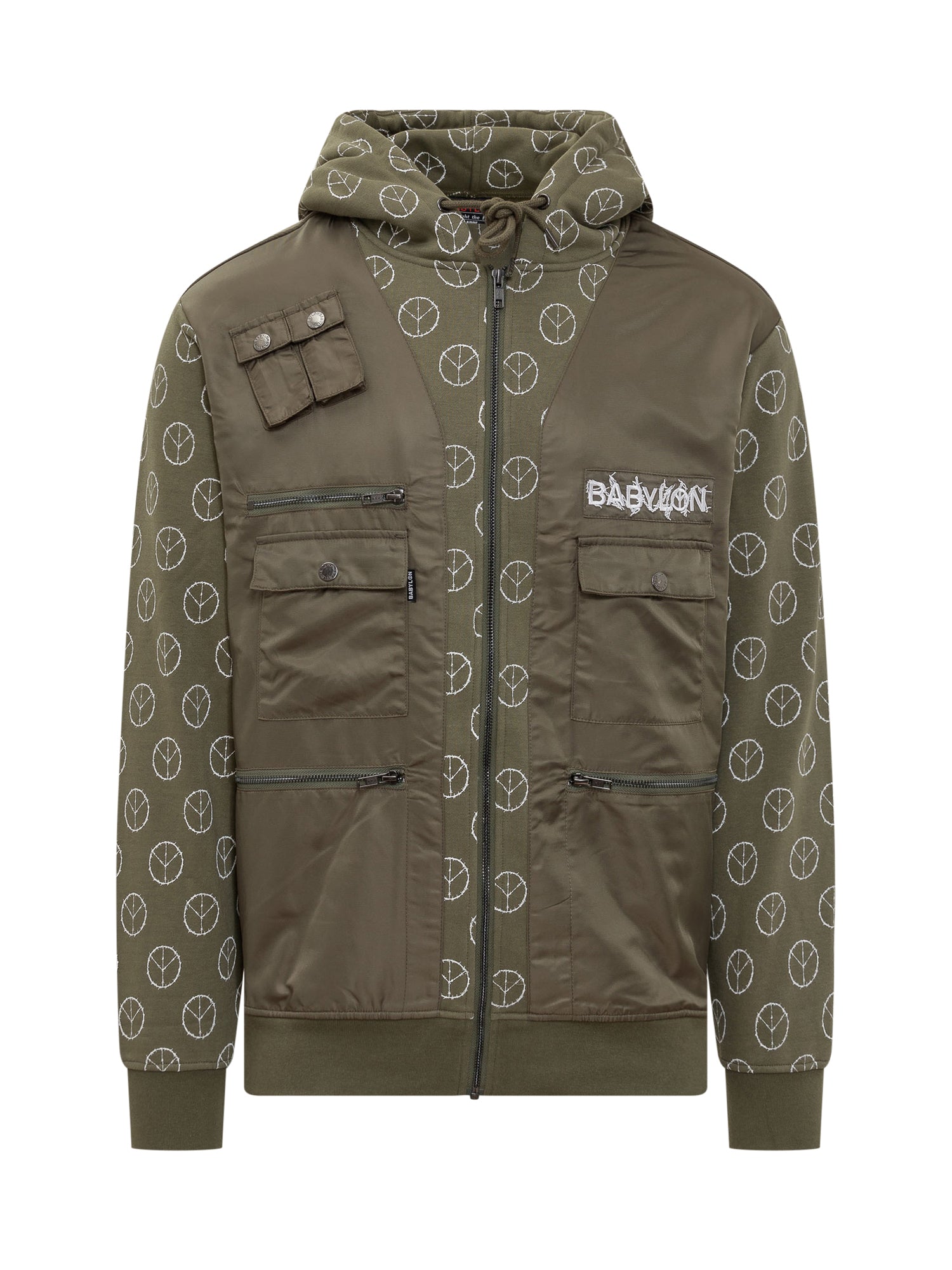 Long-sleeves sweatshirt. Zip closure on the front. Hood with drawstring. Print on sleeves and hood. Ribbed wrists and bottom. Multi.pockets.
