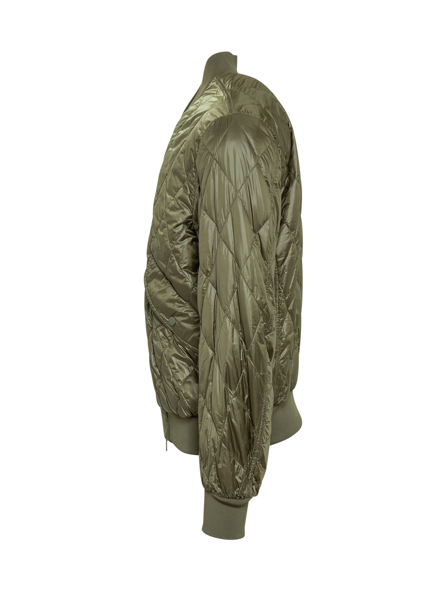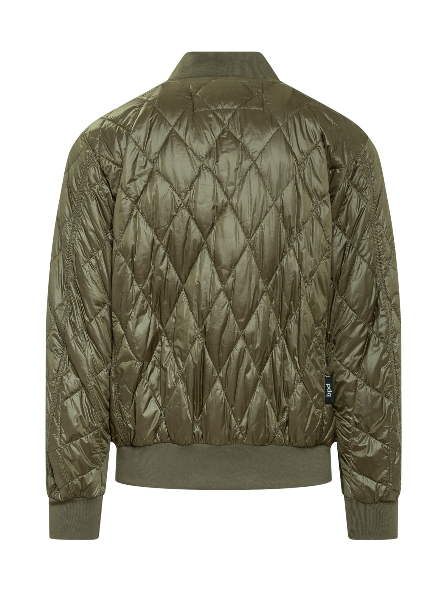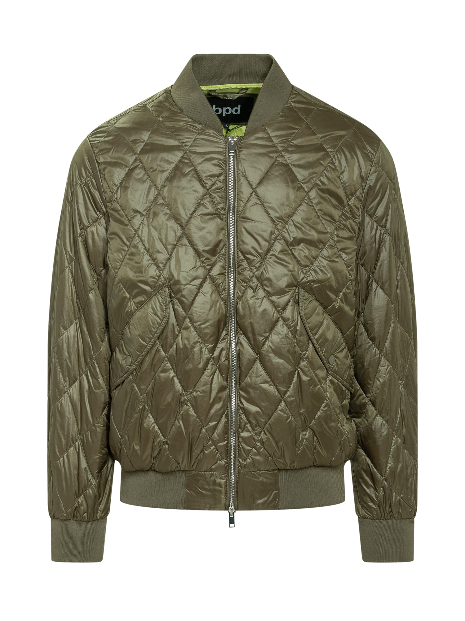 Quilted jacket. Zip closure. Ribbed collar, hem and cuffs. Two pockets on the front.