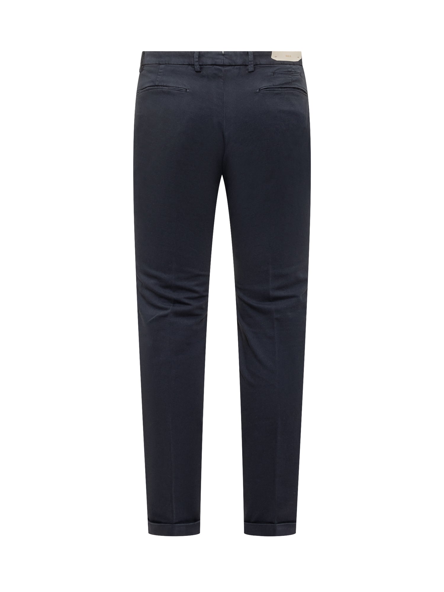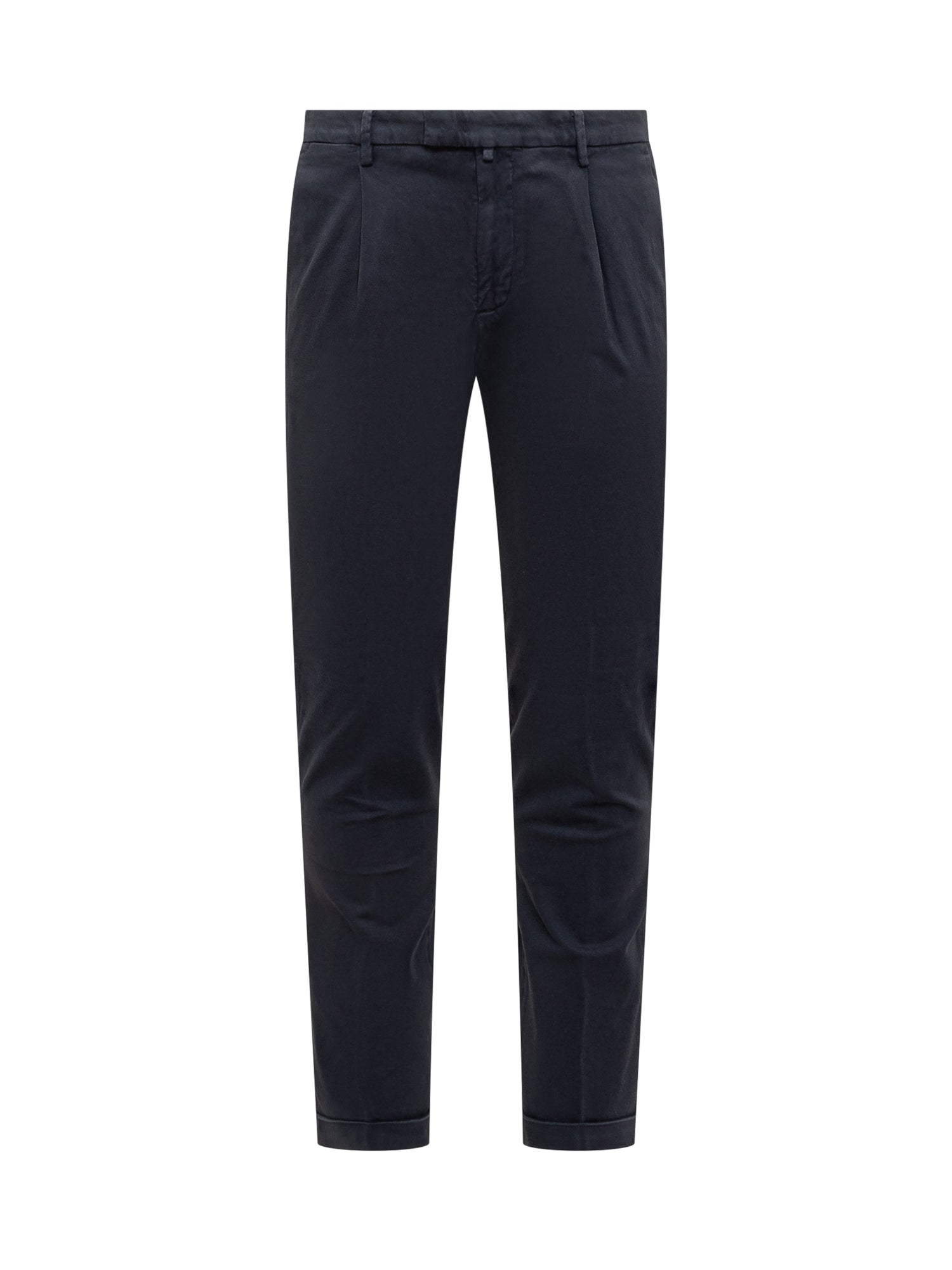 Briglia blue cotton trousers featuring front pleats and a slim fit.
