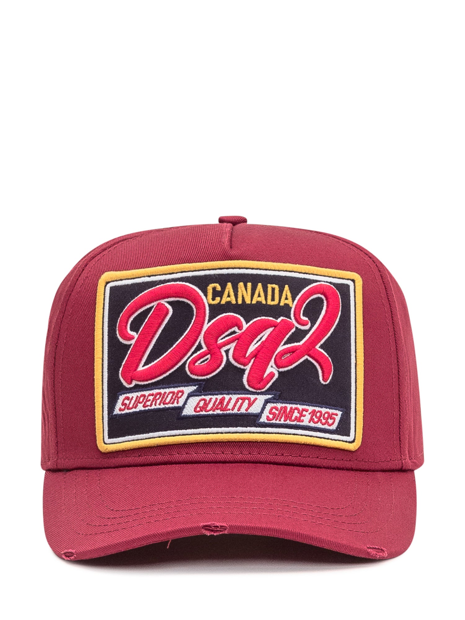 Red Dsquared2 cap with embroidered front patch. Adjustable back strap for a custom fit.