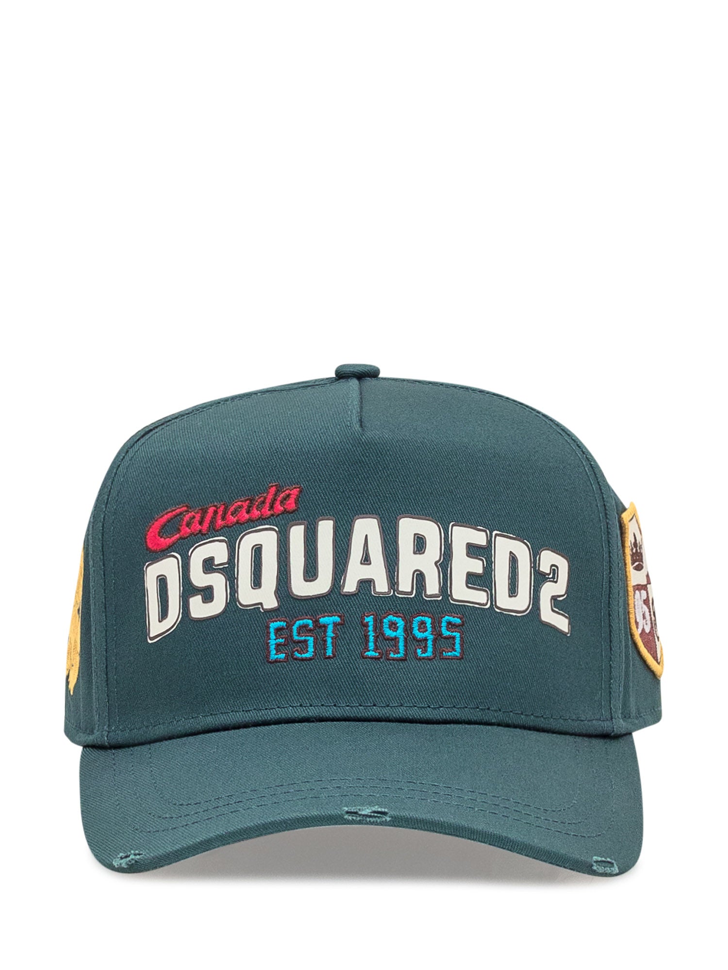 Petrol green Dsquared2 cap in cotton with embroidered logo and side patches. Curved brim with worn details. Adjustable back strap.