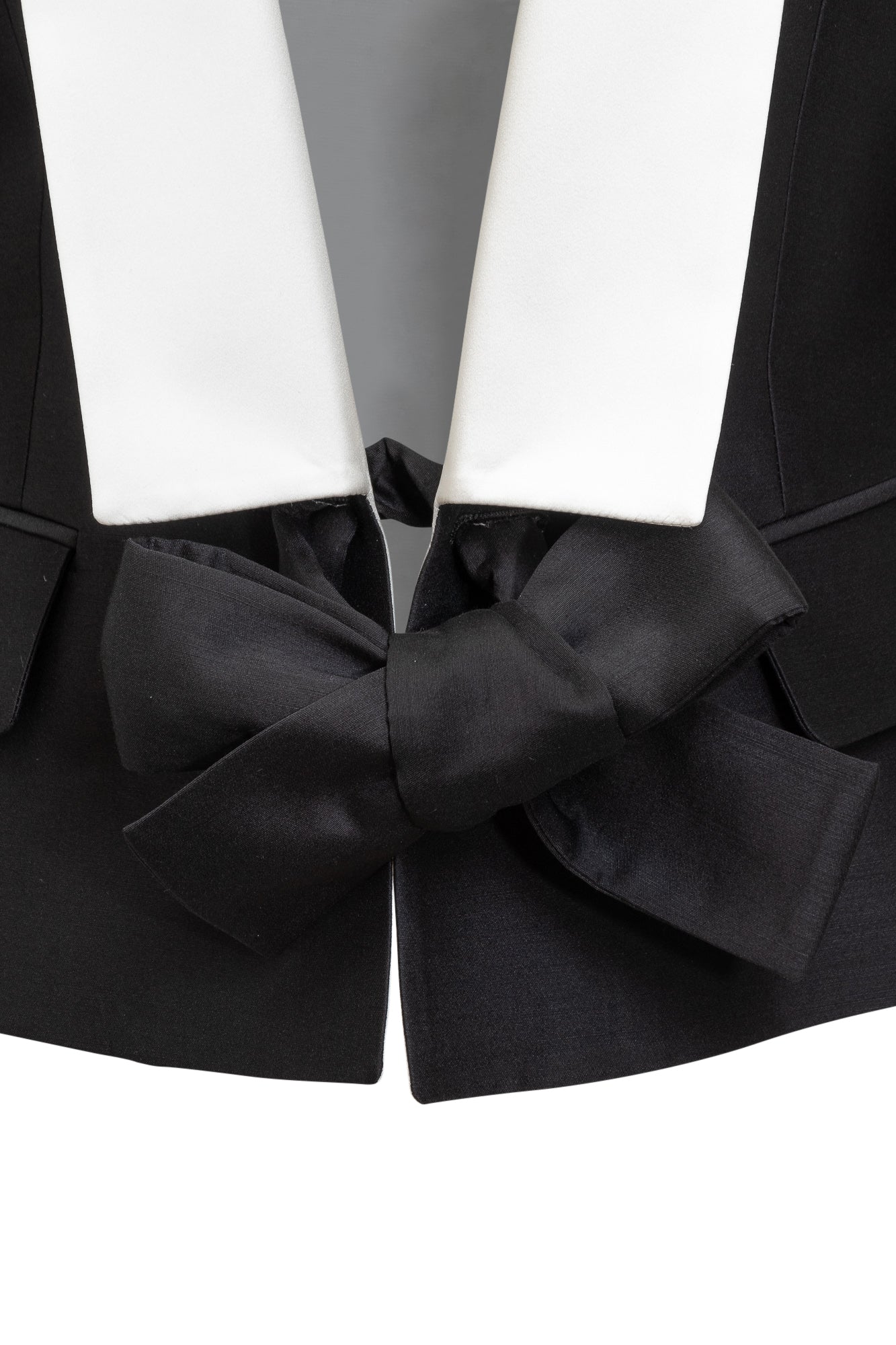 Ribbon closure on the front.