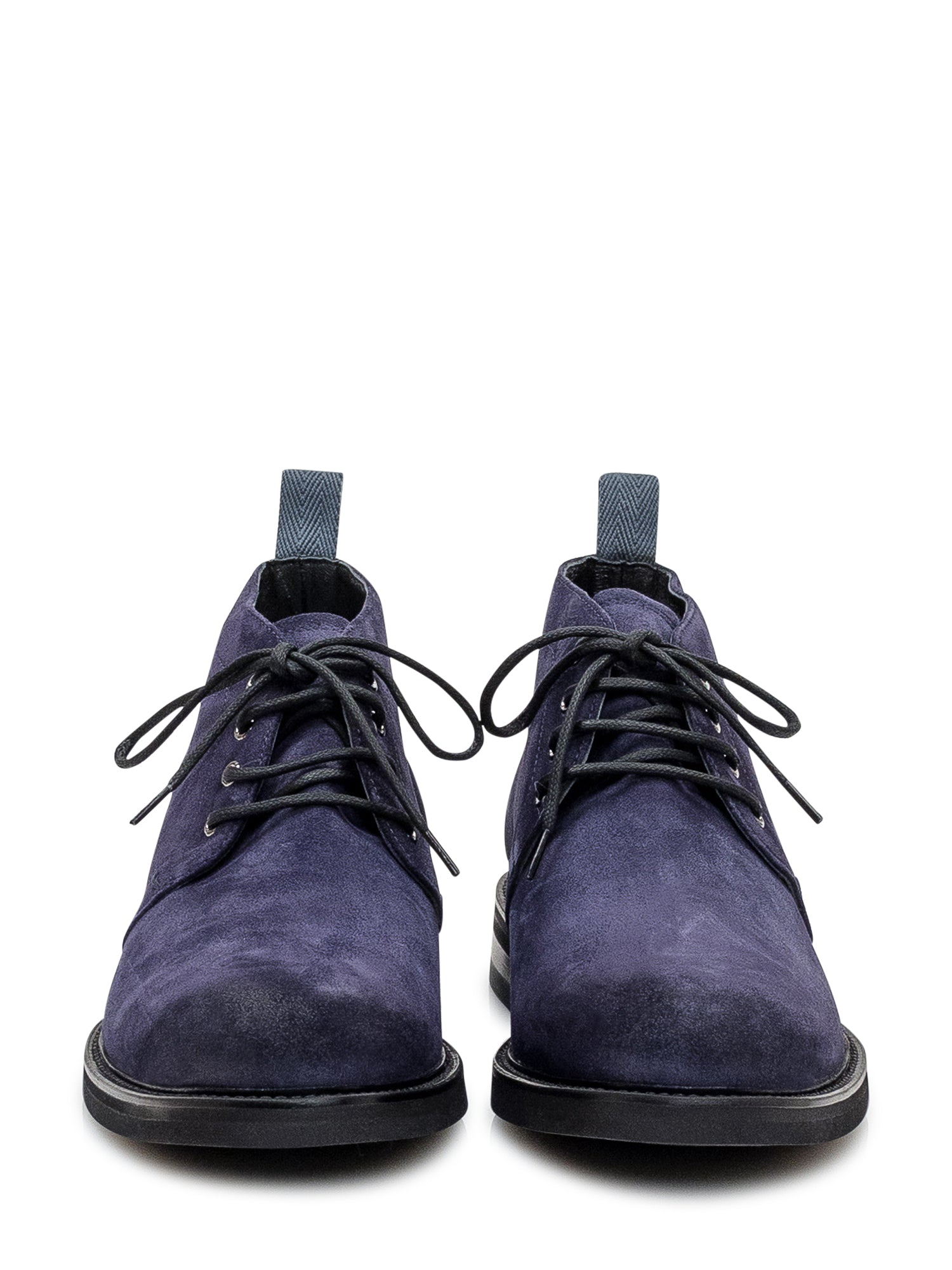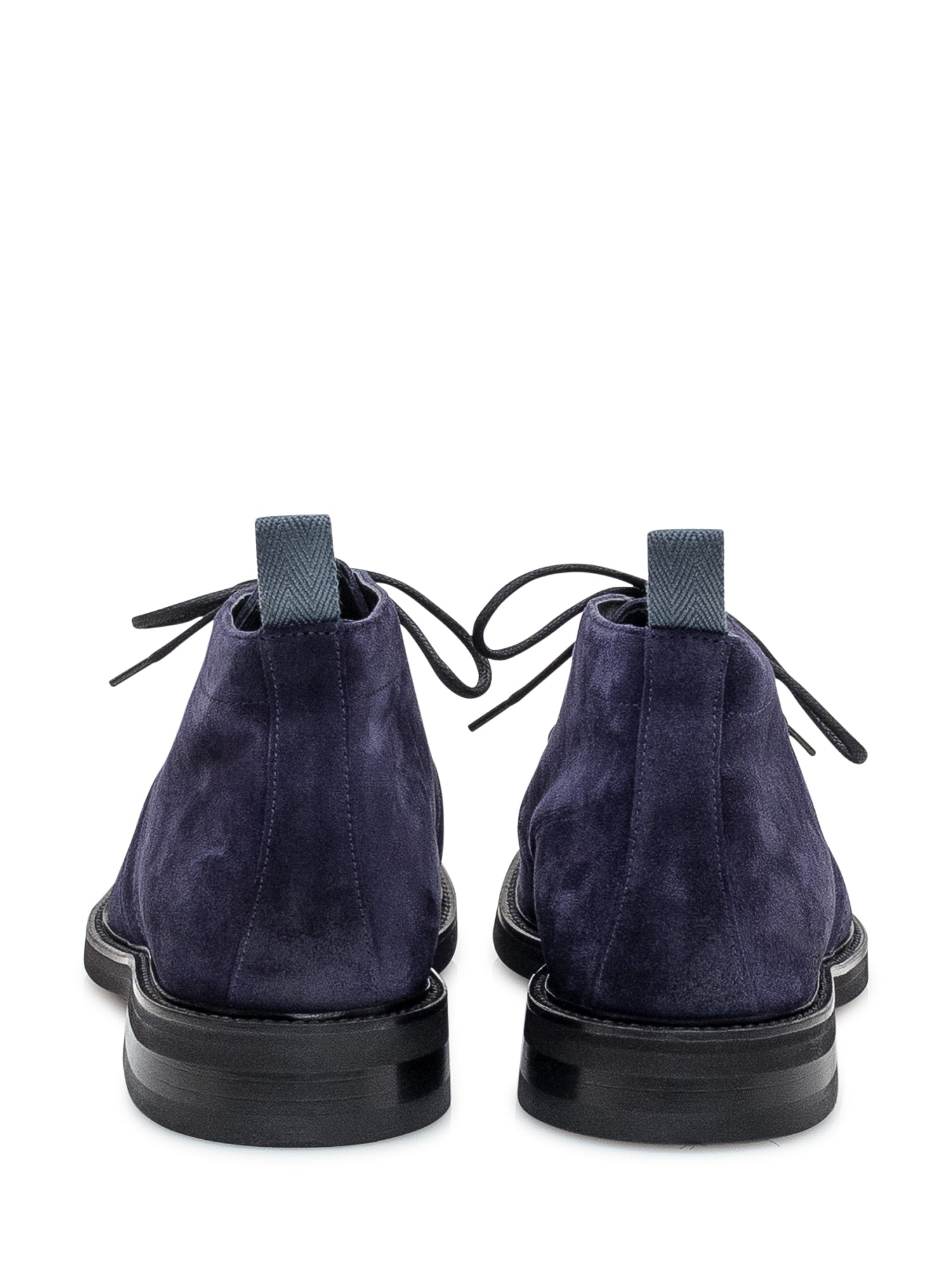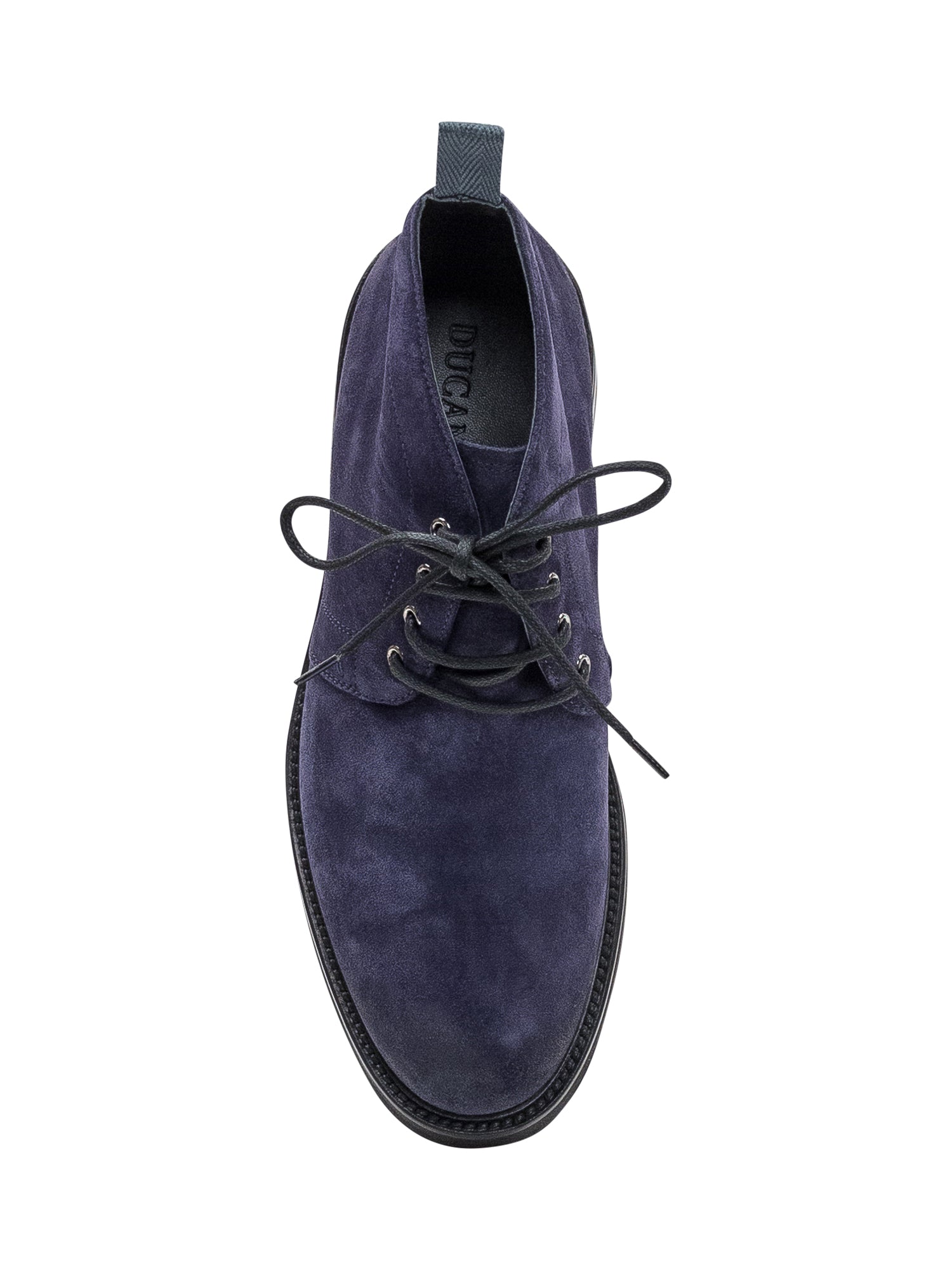 Duca Nero blue suede desert boots with lace-up closure and leather sole with rubber insert.