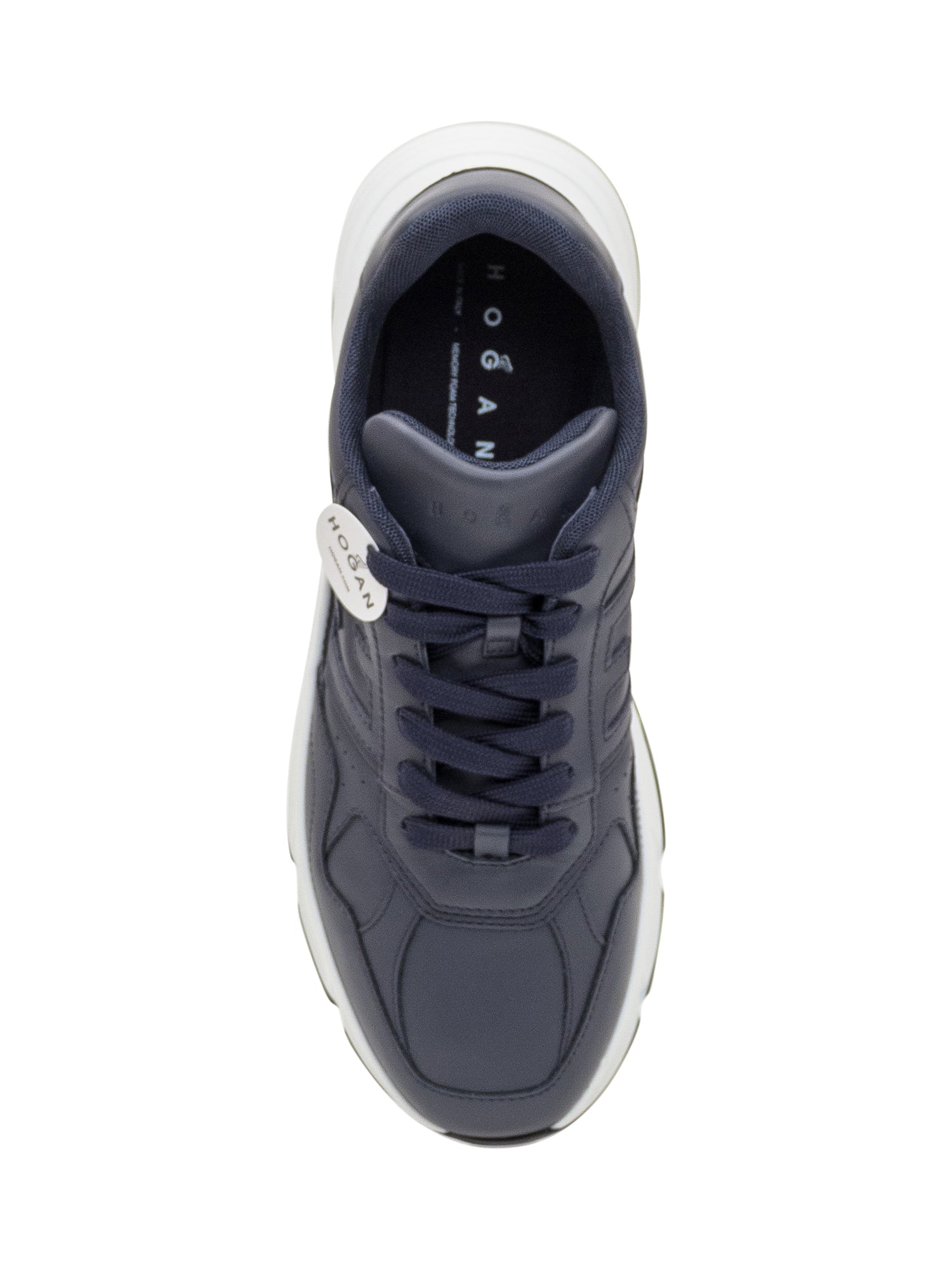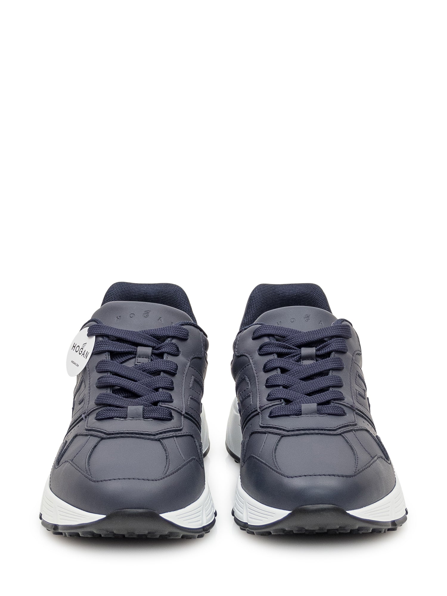 Hogan Hyperlight sneakers in smooth navy blue leather with embossed side logo. Ultra-light rubber sole with anti-slip grip. Comfortable and versatile model.