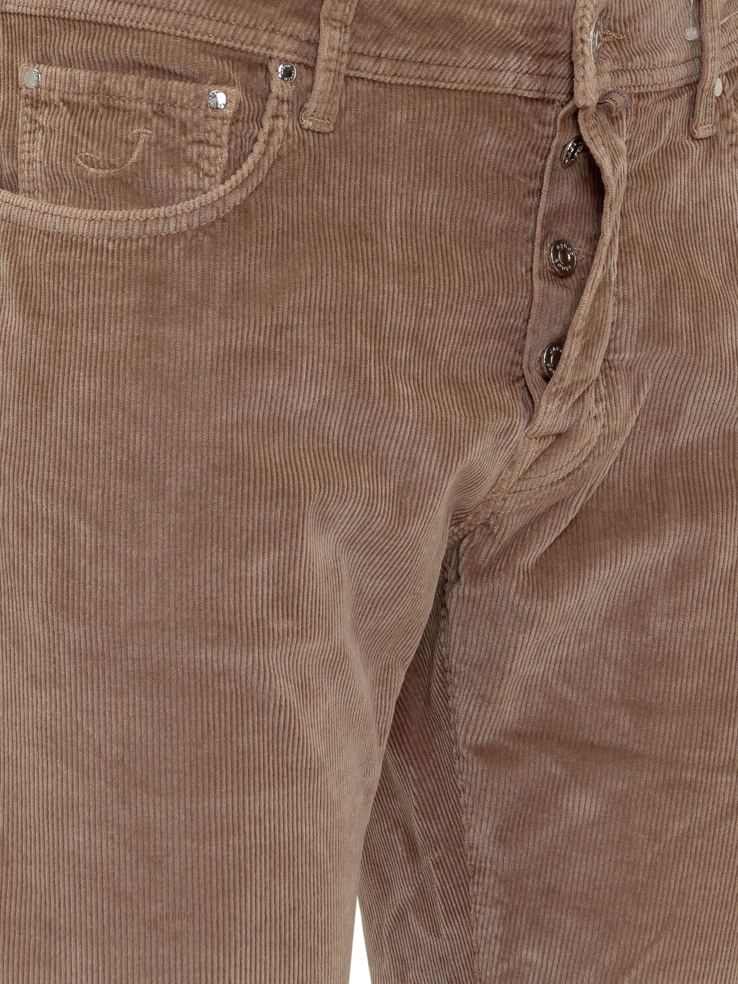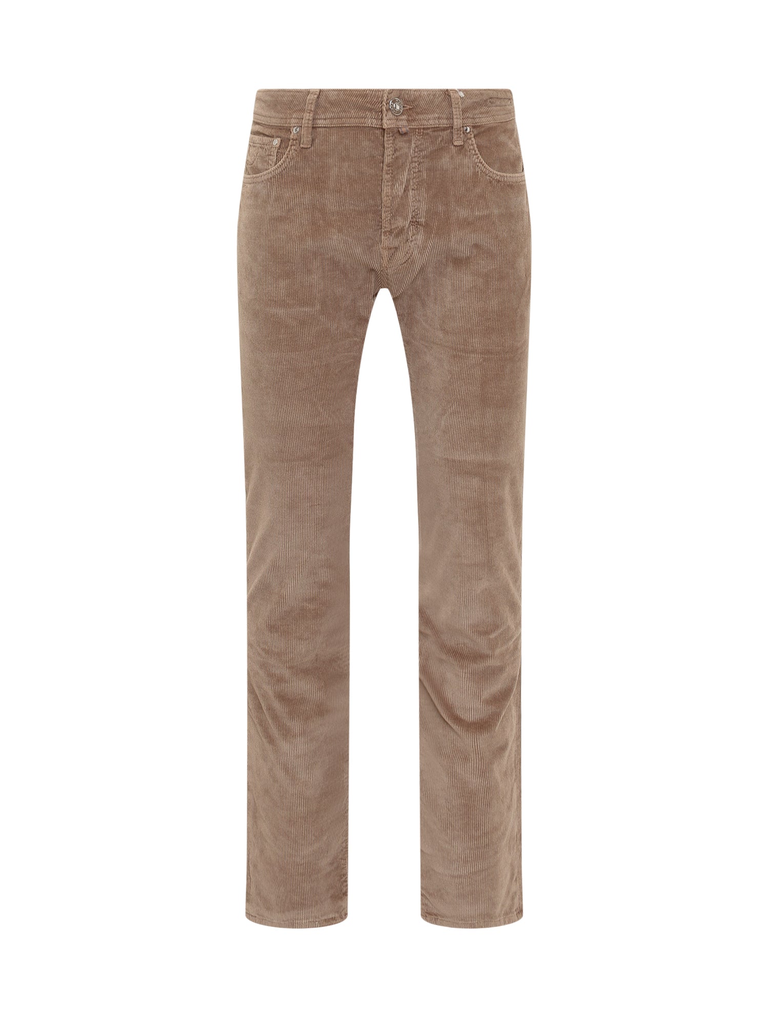 Long ribbed jeans. 5 pockets. Front button closure. Belt loops. Embroidered logo on the front.