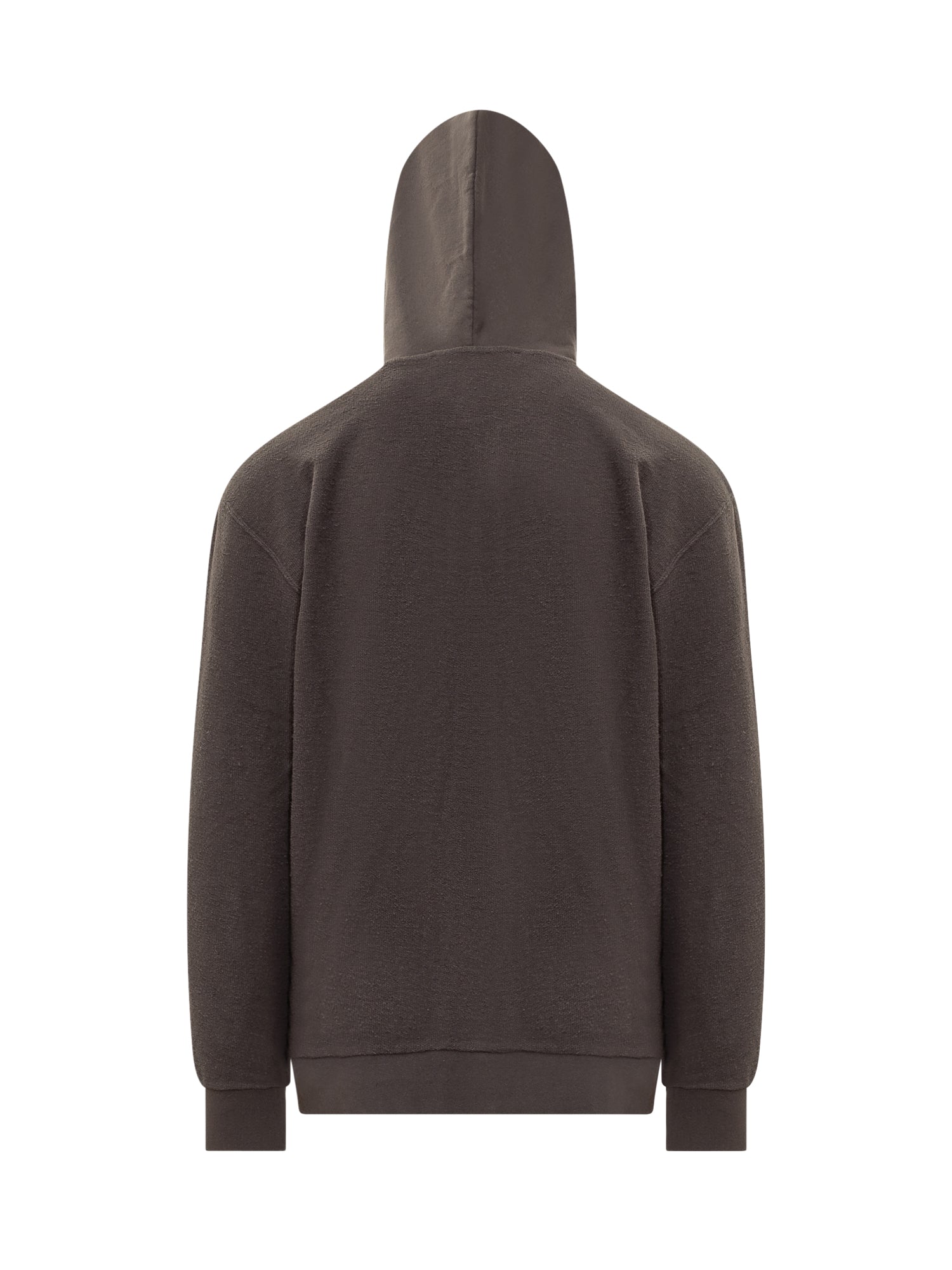 Hoodie. Contrast fabric on front. Ribbed hem and cuffs. Black color.