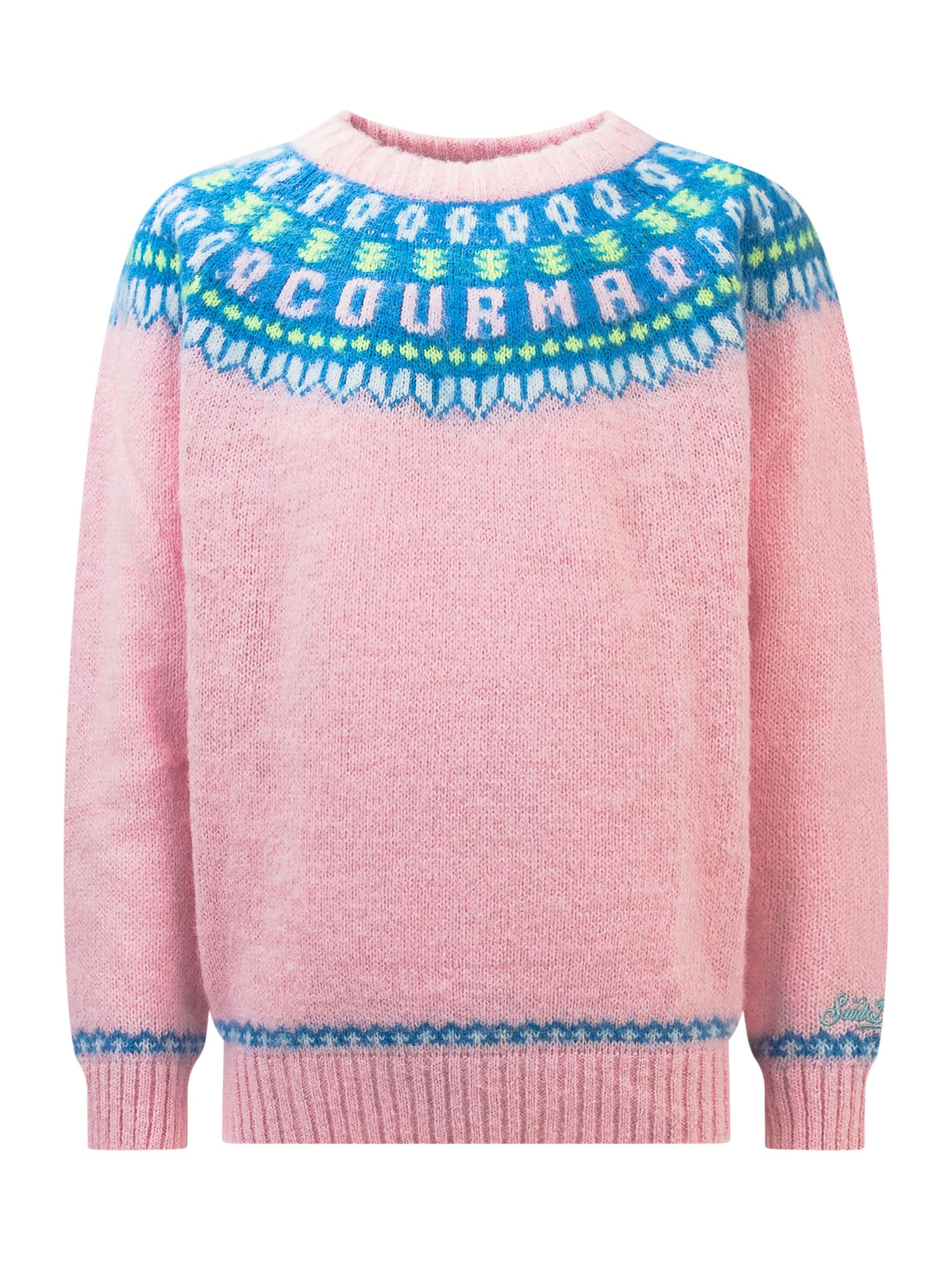 Long-sleeved sweater. Crew neck. Ribbed hem. Courma jacquard motif on front.