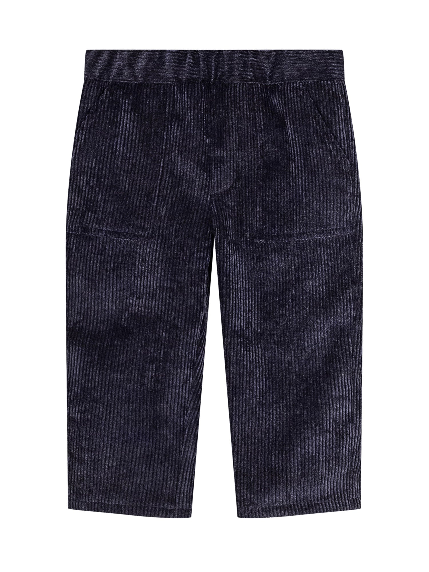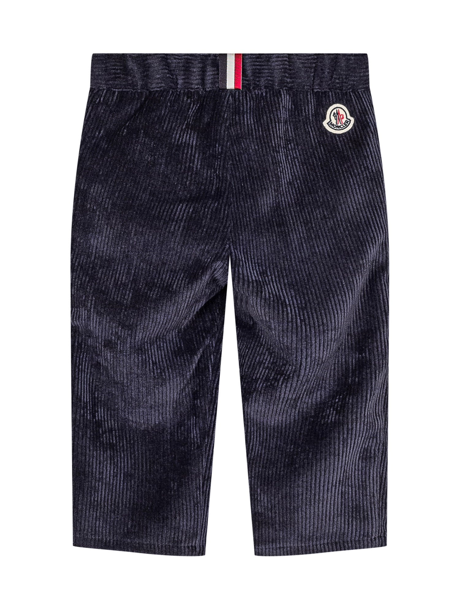 Blue corduroy pants with elastic waistband, tricolor detail and Moncler logo.