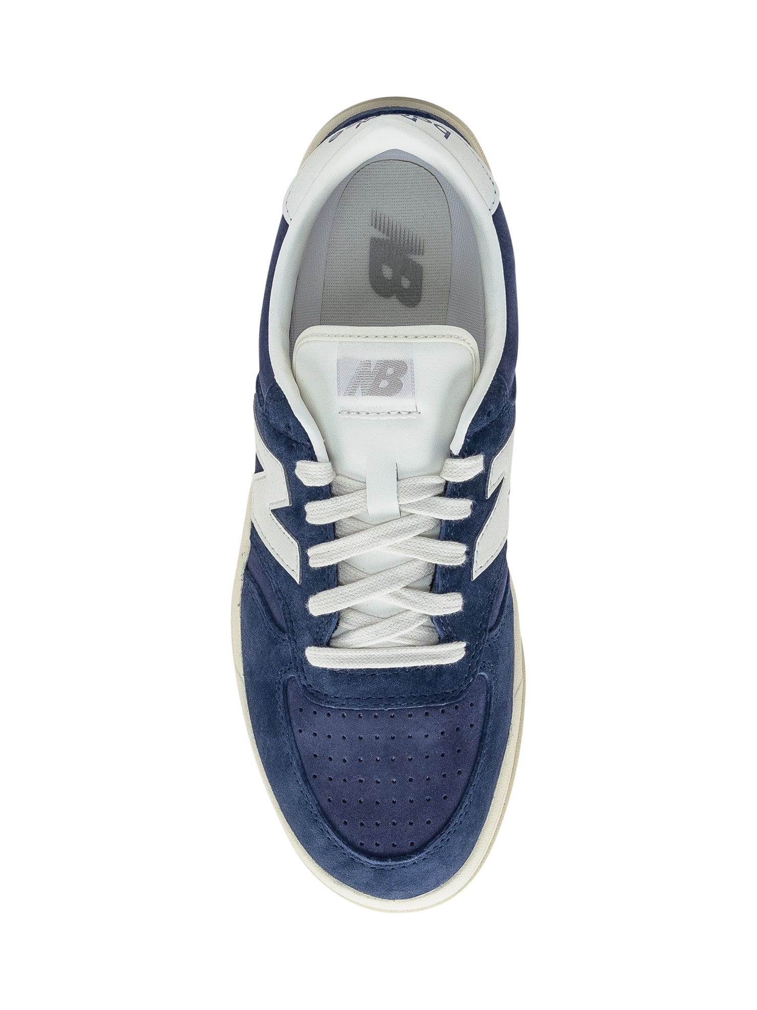 Blue suede trainers. Lace-up closure. Perforated toe. Contrasting heel with NEW BALANCE lettering.