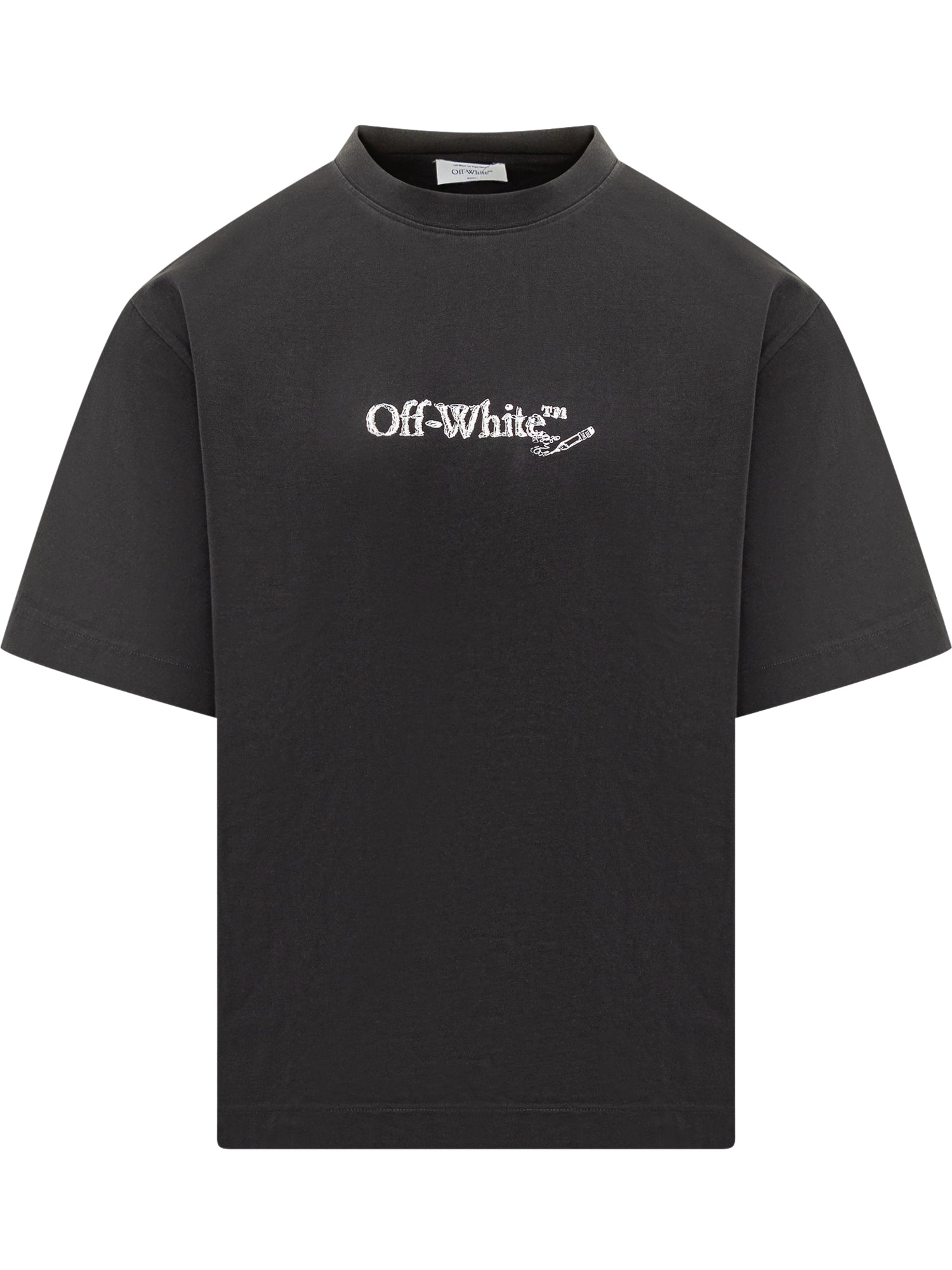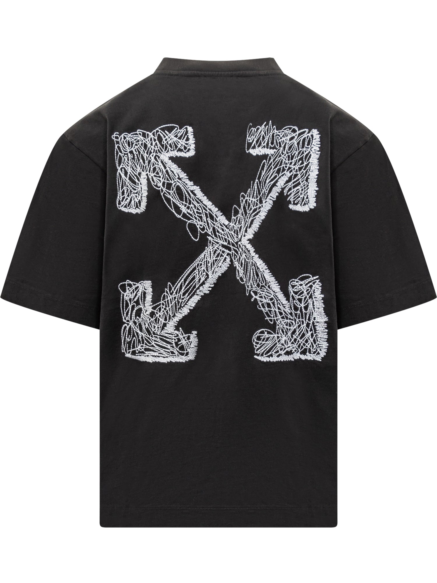 Black cotton T-shirt by Off-White featuring contrasting embroidered logo on the chest.