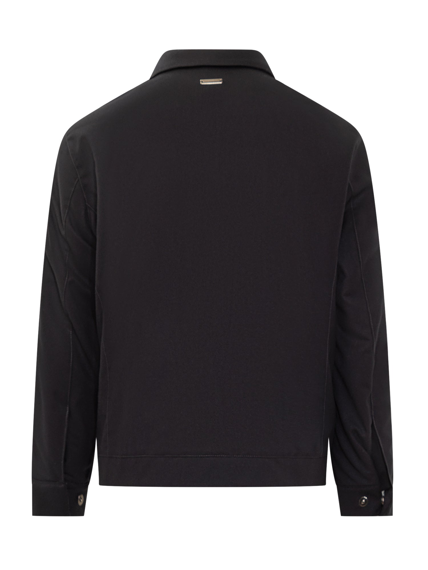 Paolo Pecora black technical stretch fabric jacket. Minimalist design with double-slider zip, flap front pockets, and a classic collar.