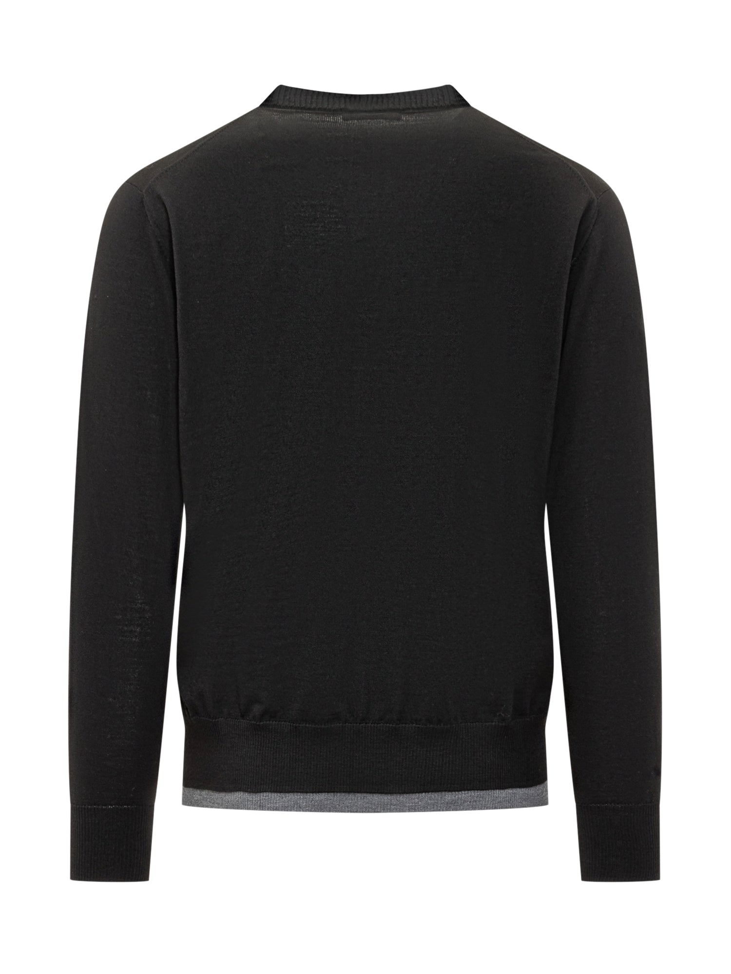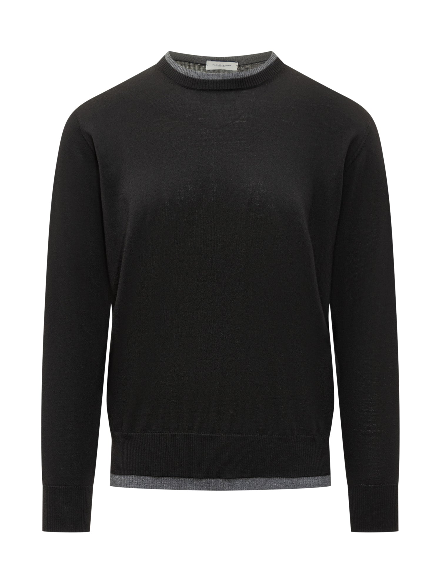 Paolo Pecora black wool crewneck sweater with contrasting trims.