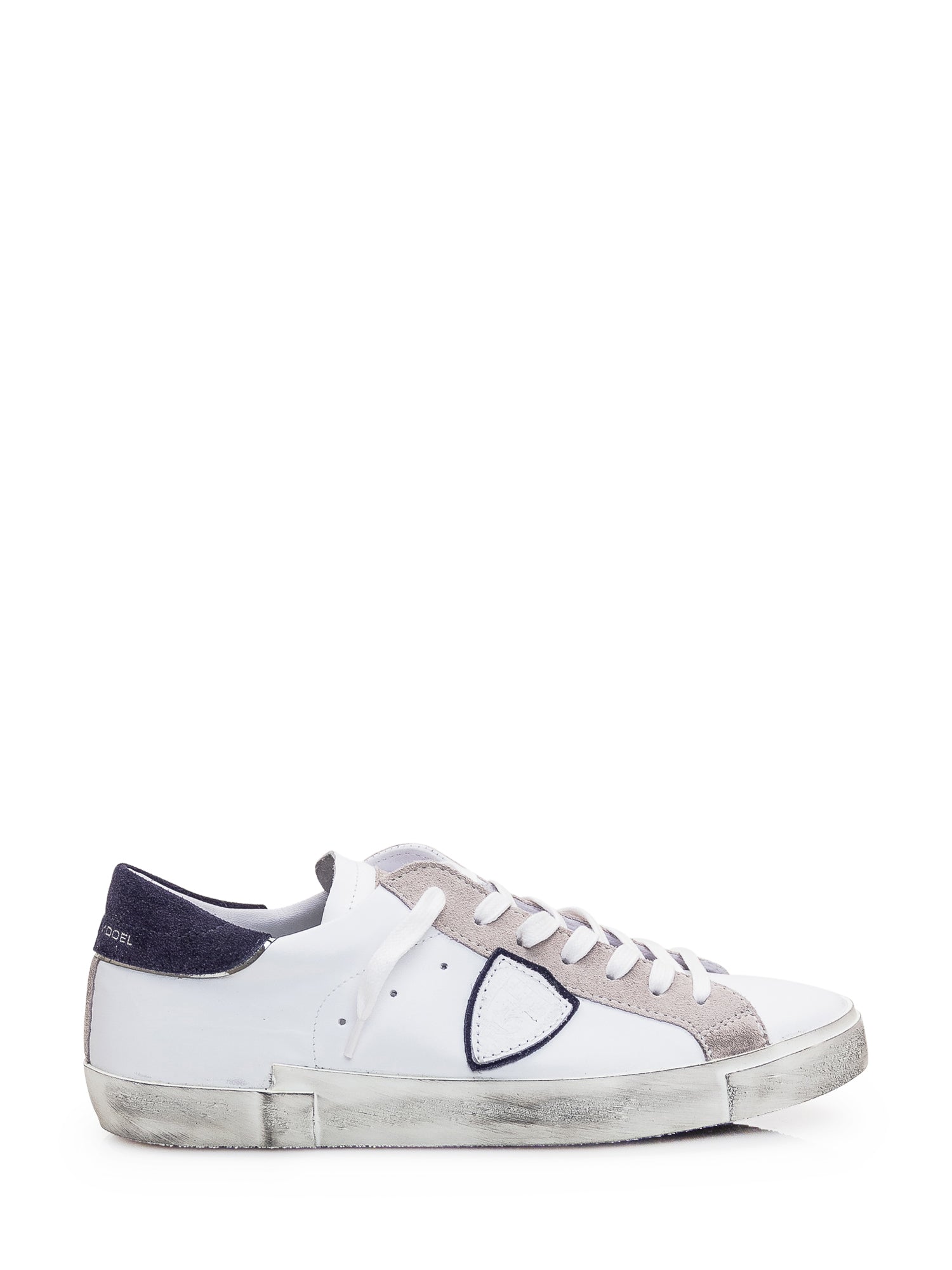 White low-top sneaker. Suede inserts. Closure with laces. Contrast heel with logo. Logo patch on the tongue. Side shield on the side. Rubber sole with tread.