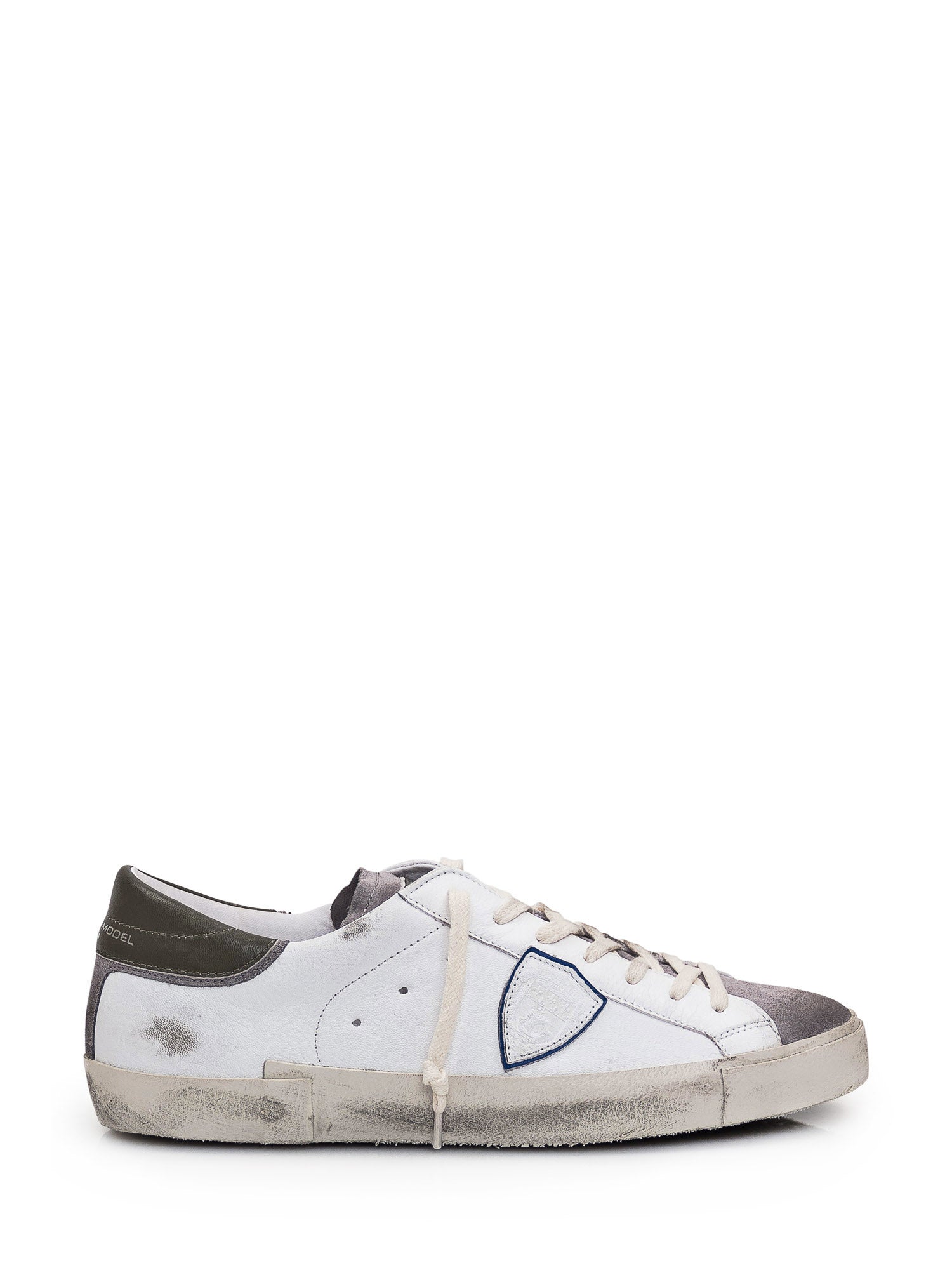 Low-top sneaker. Lace-up closure. Suede leather inserts. Heel with logo. Scudetto patch on side. Logo on tongue. Vintage and distressed effect.