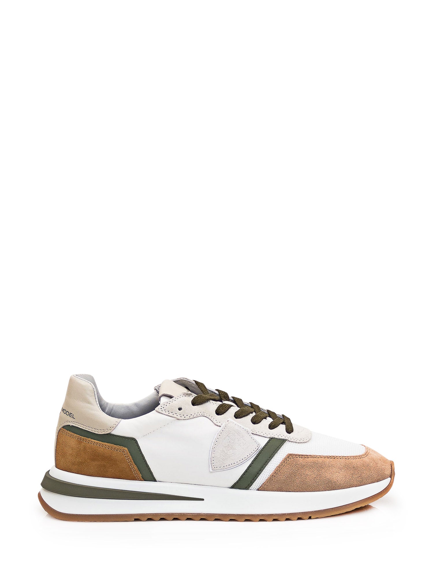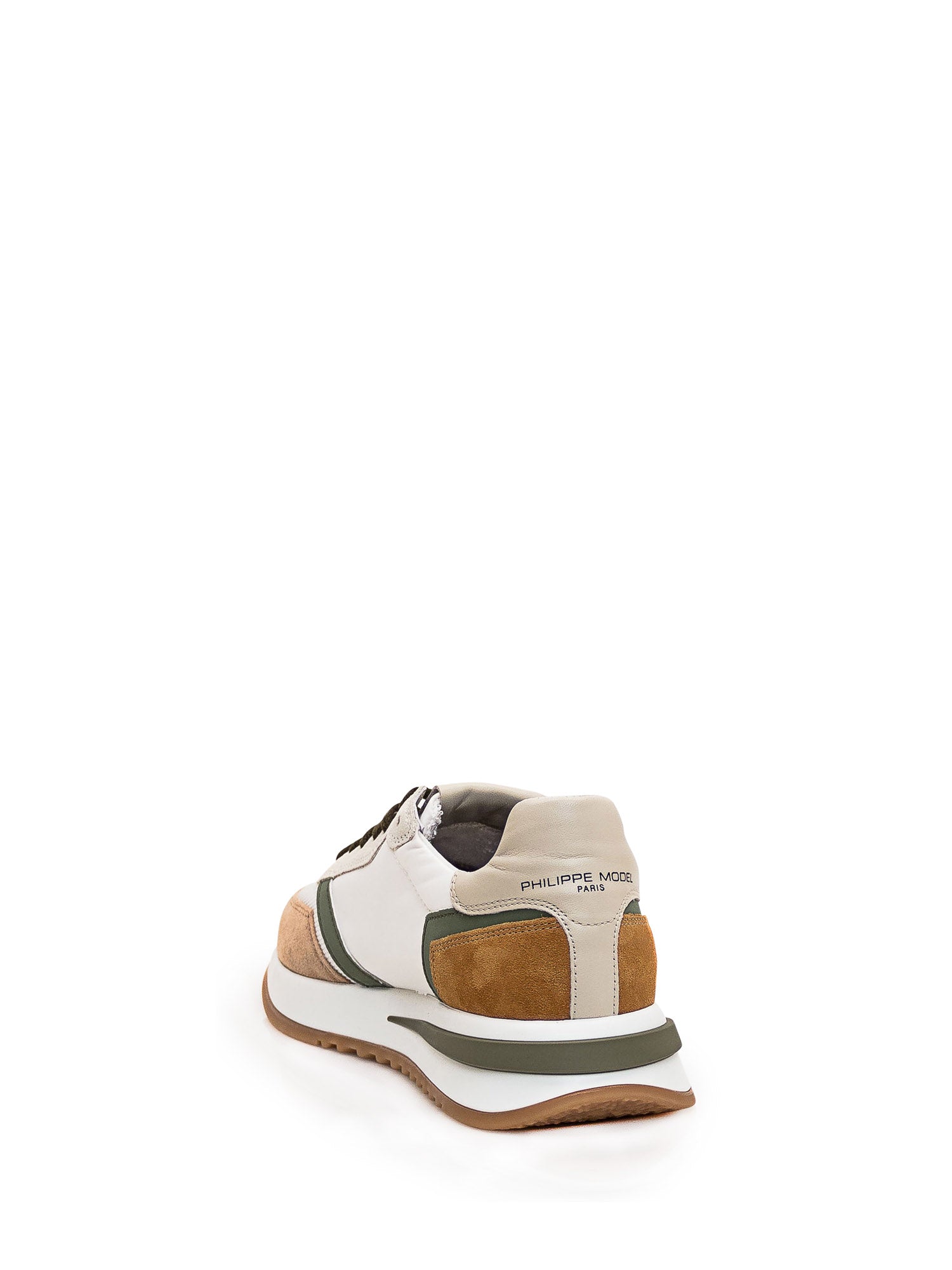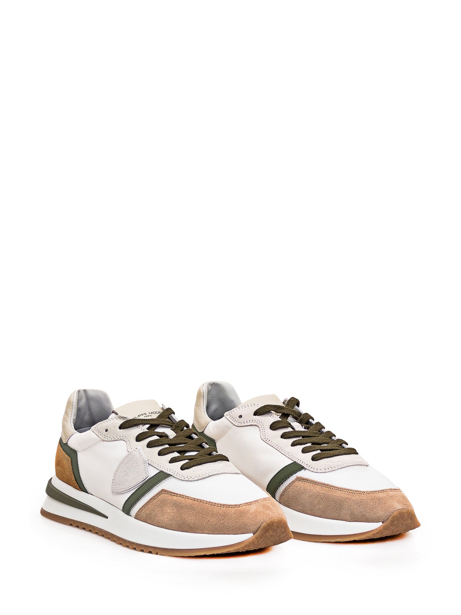 White leather sneakers. Mesh and suede fabric inserts. Lace-up closure. Leather logo patch on tongue and heel. Detail shield in suede leather on the side.