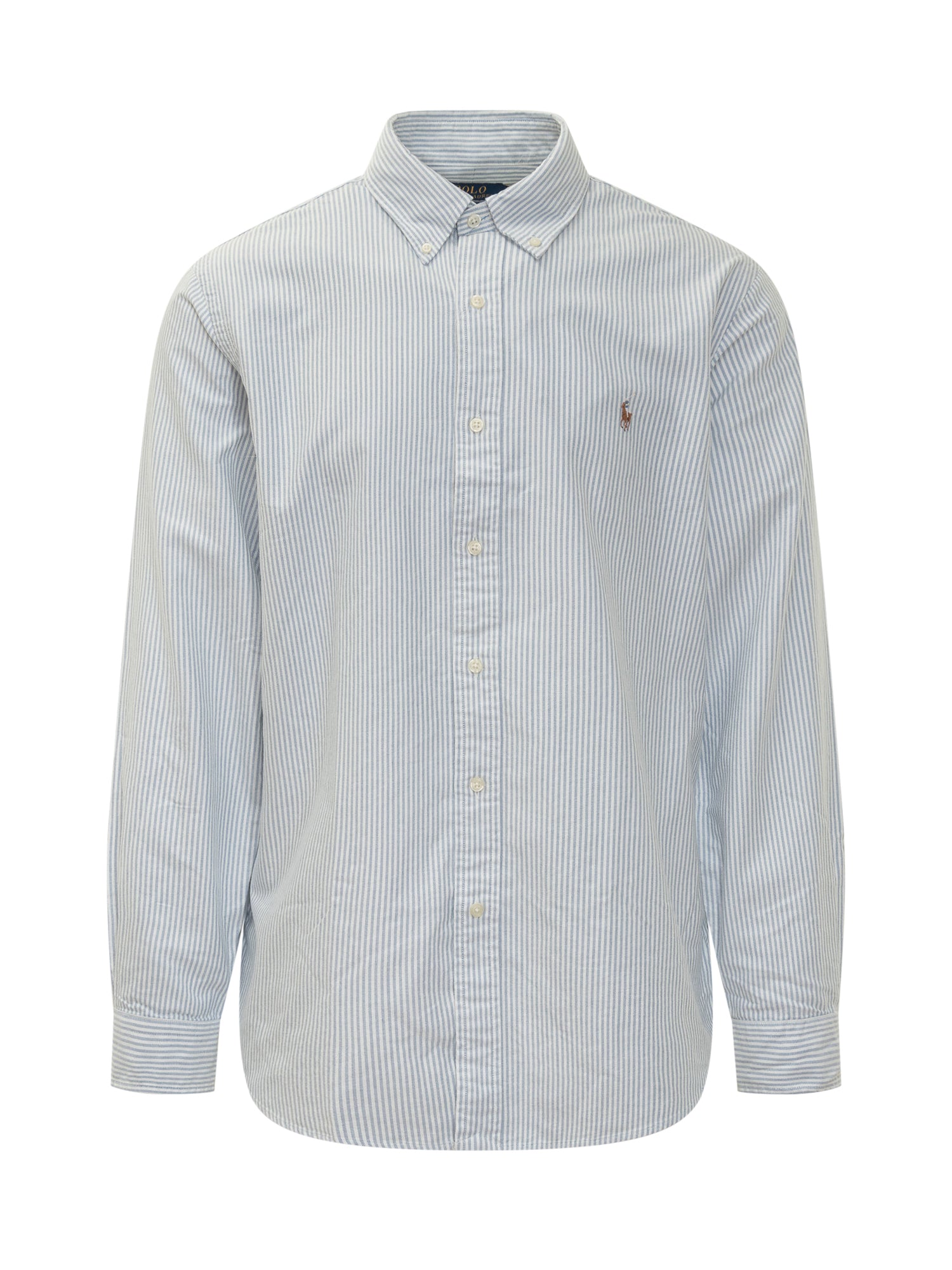 Polo Ralph Lauren cotton shirt with light blue and white stripes, button-down collar, button closure and embroidered chest logo.