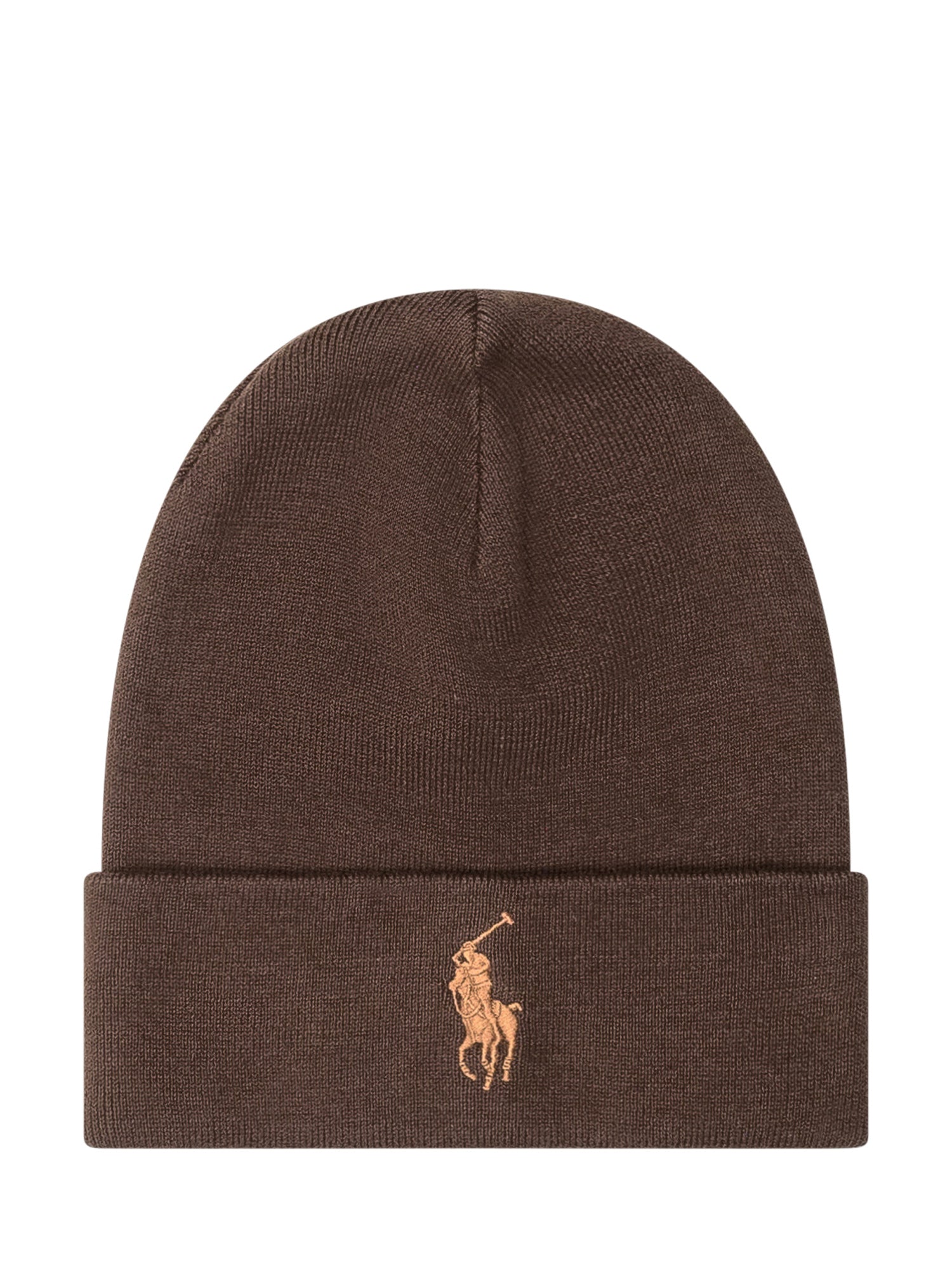 Polo Ralph Lauren beanie in brown wool with turn-up hem and iconic tone-on-tone embroidered logo.