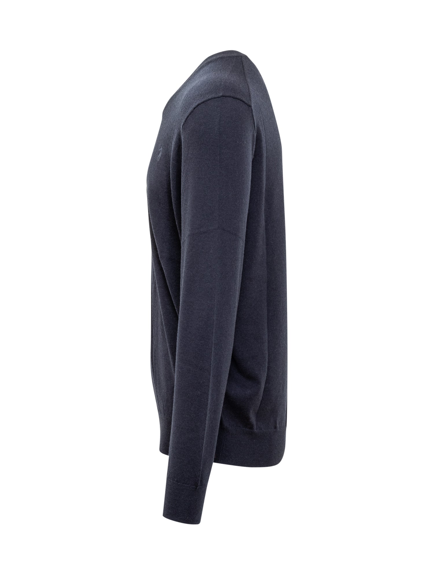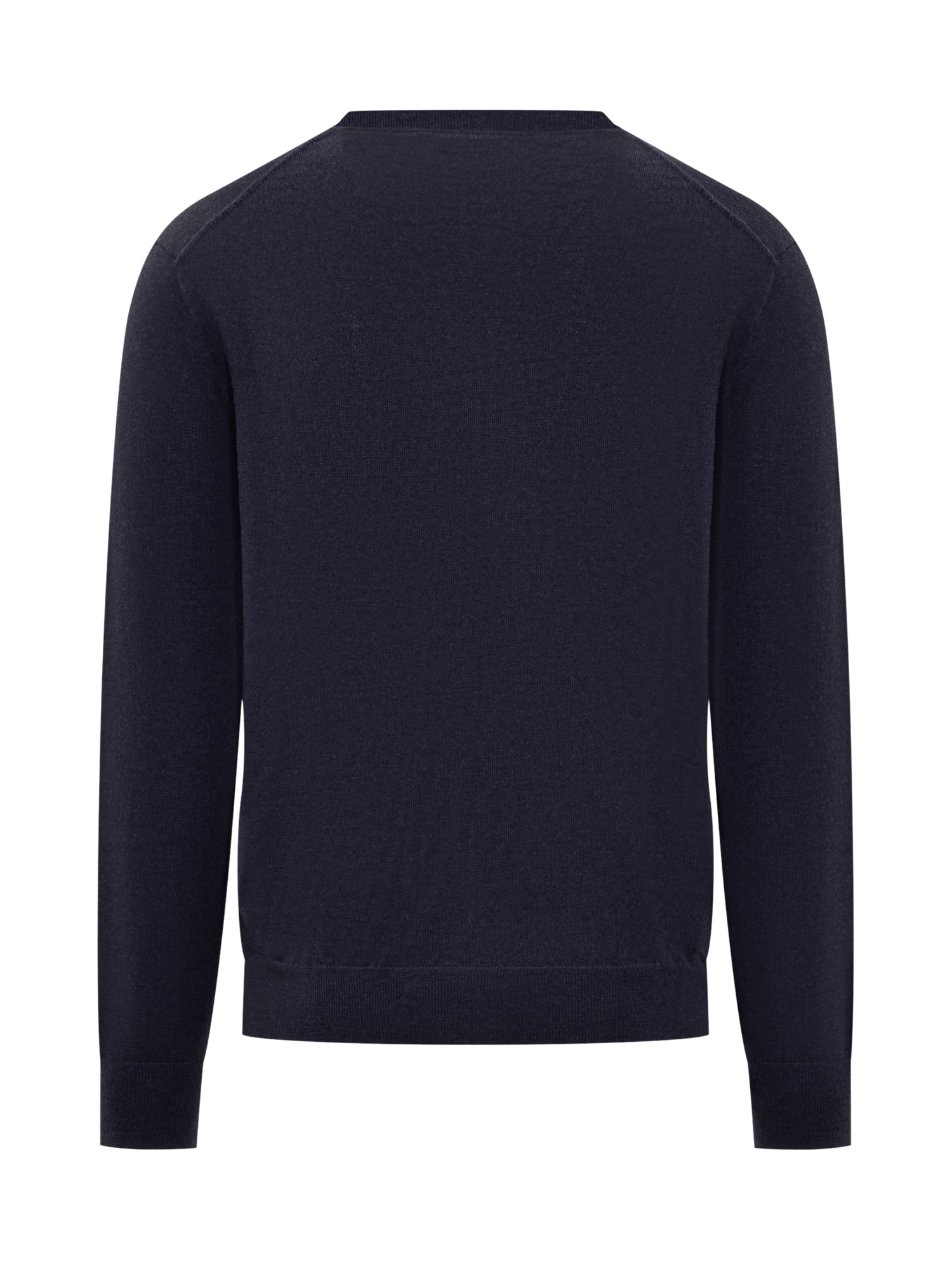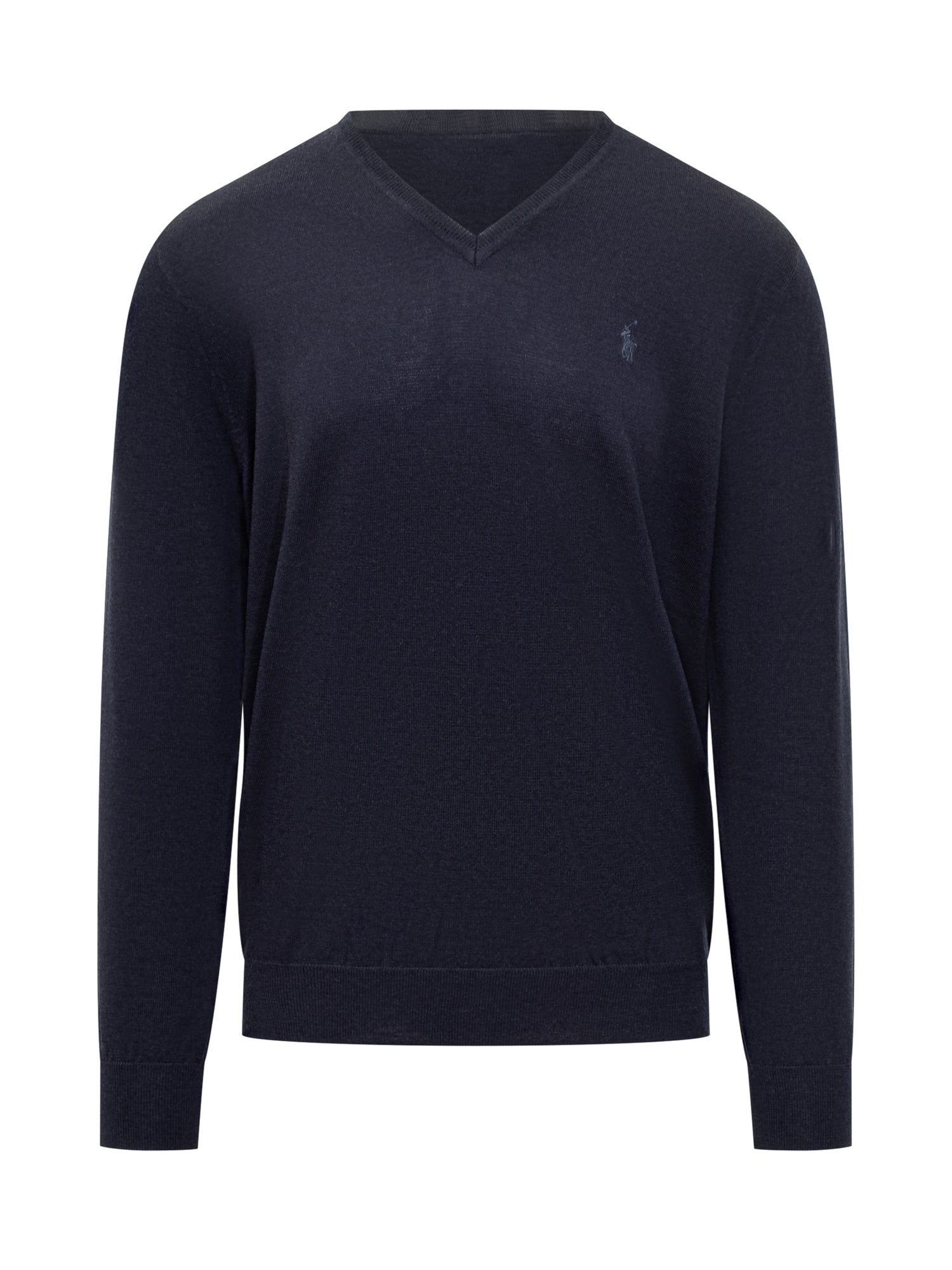 Polo Ralph Lauren dark blue virgin wool sweater with V-neck and embroidered pony logo on the chest.