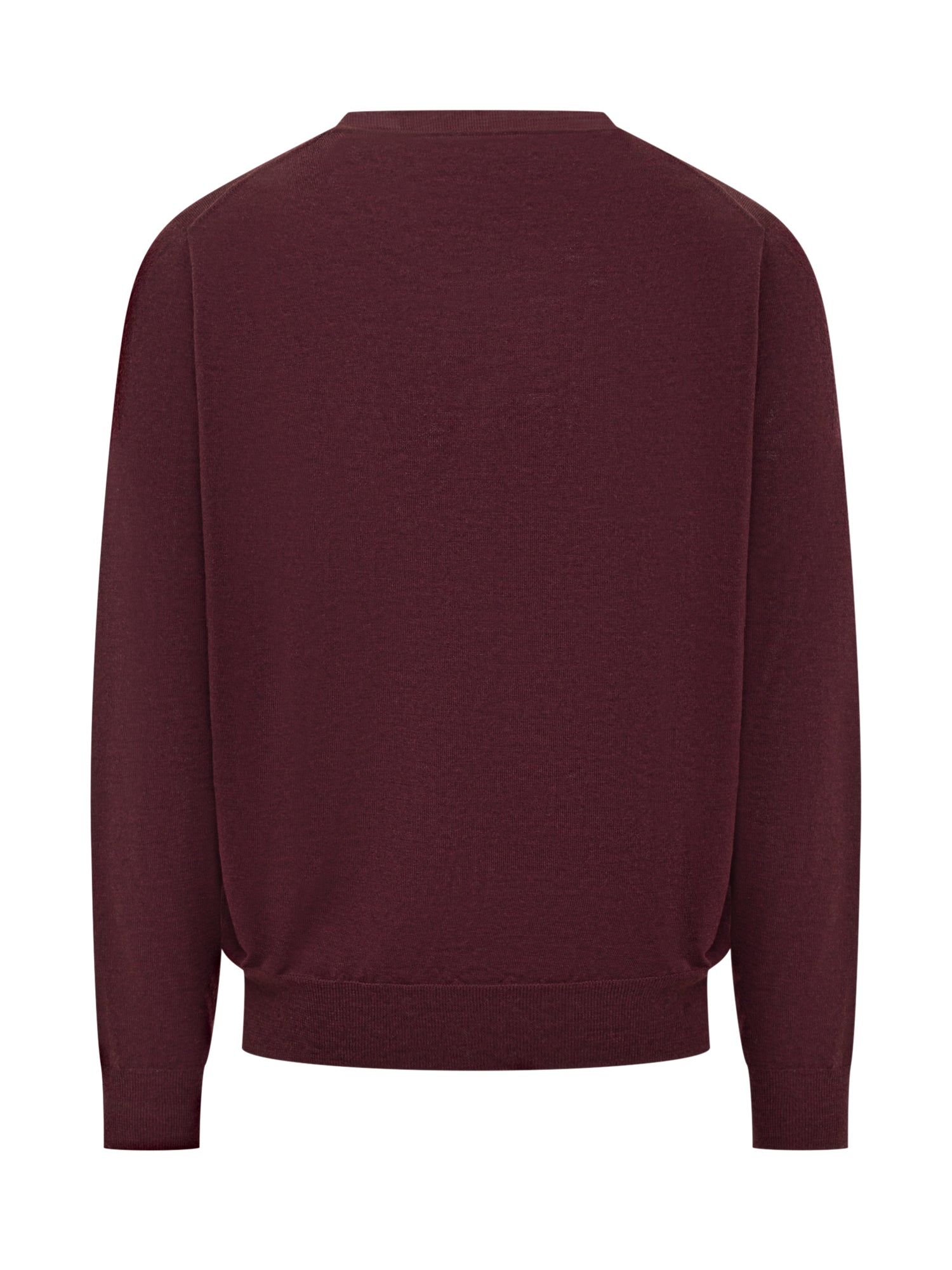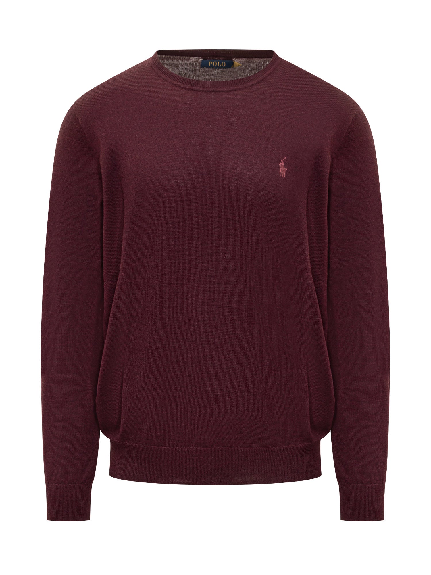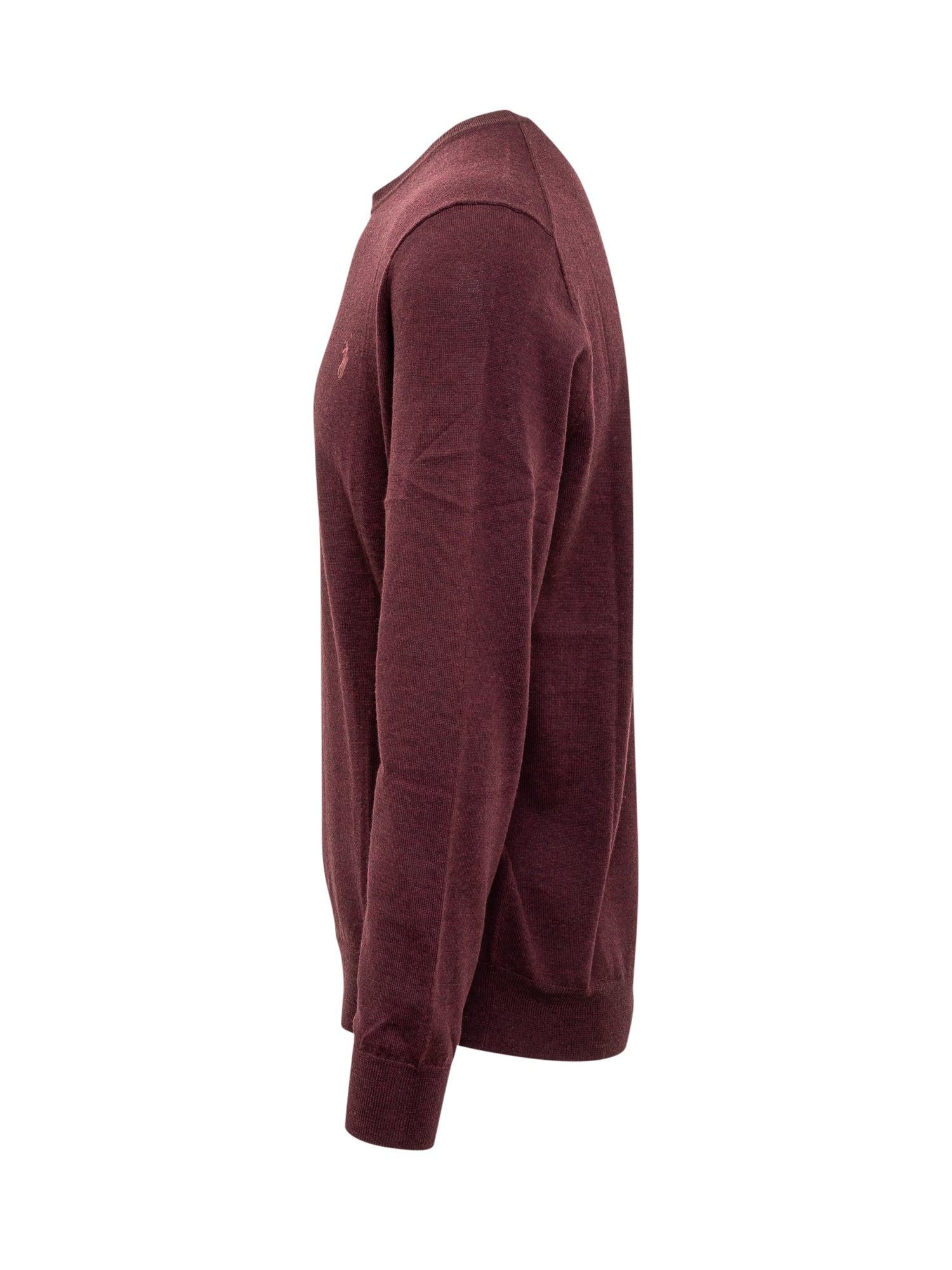 Polo Ralph Lauren bordeaux virgin wool sweater with classic crewneck and embroidered pony logo on the chest.