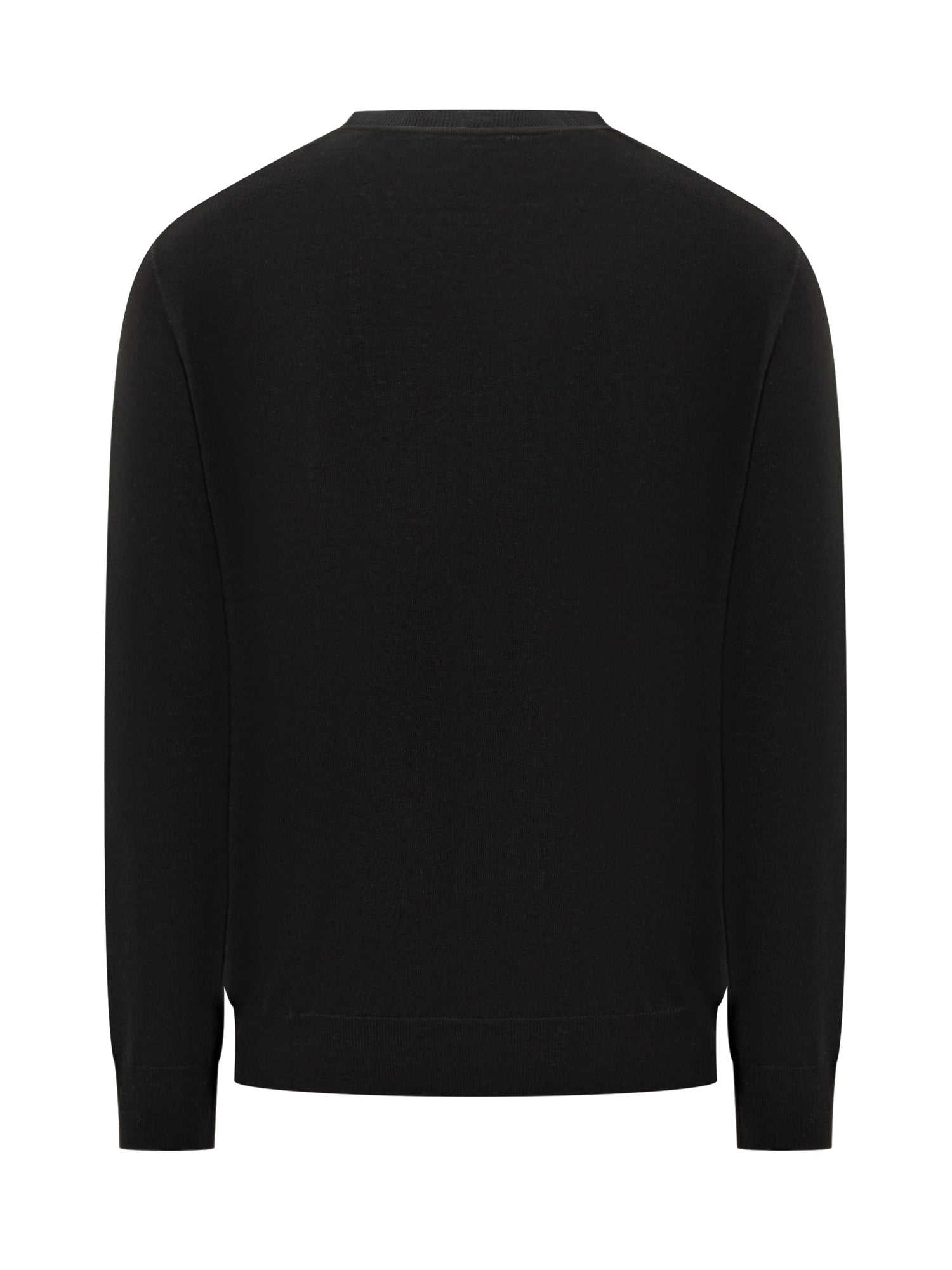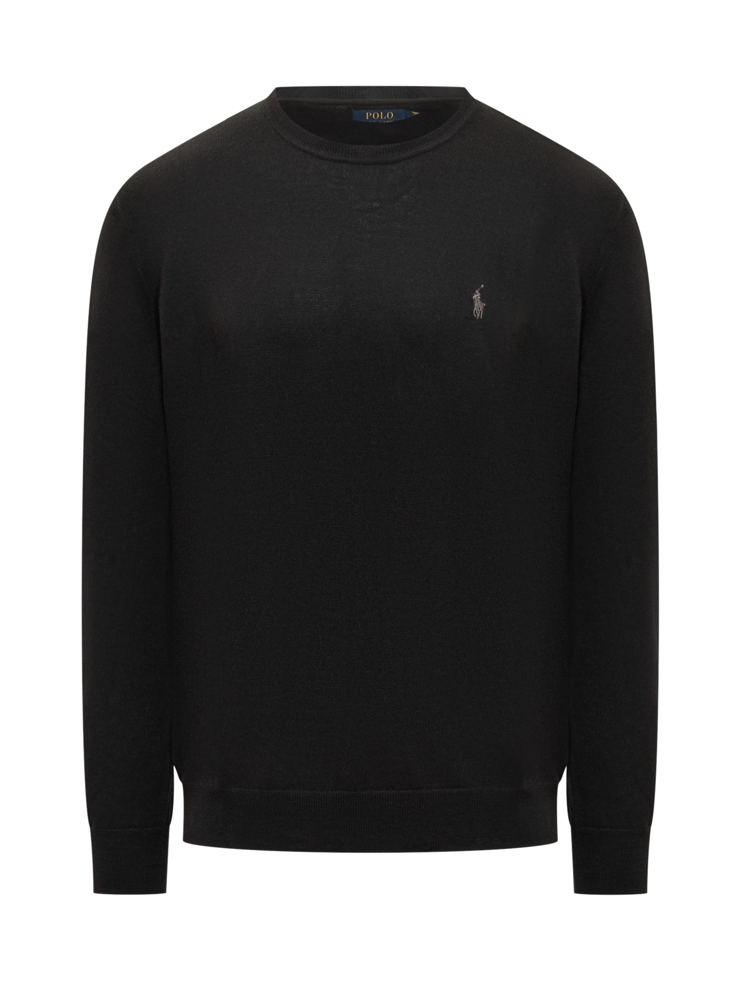 Polo Ralph Lauren black virgin wool sweater with crewneck and tonal embroidered pony logo on the chest.