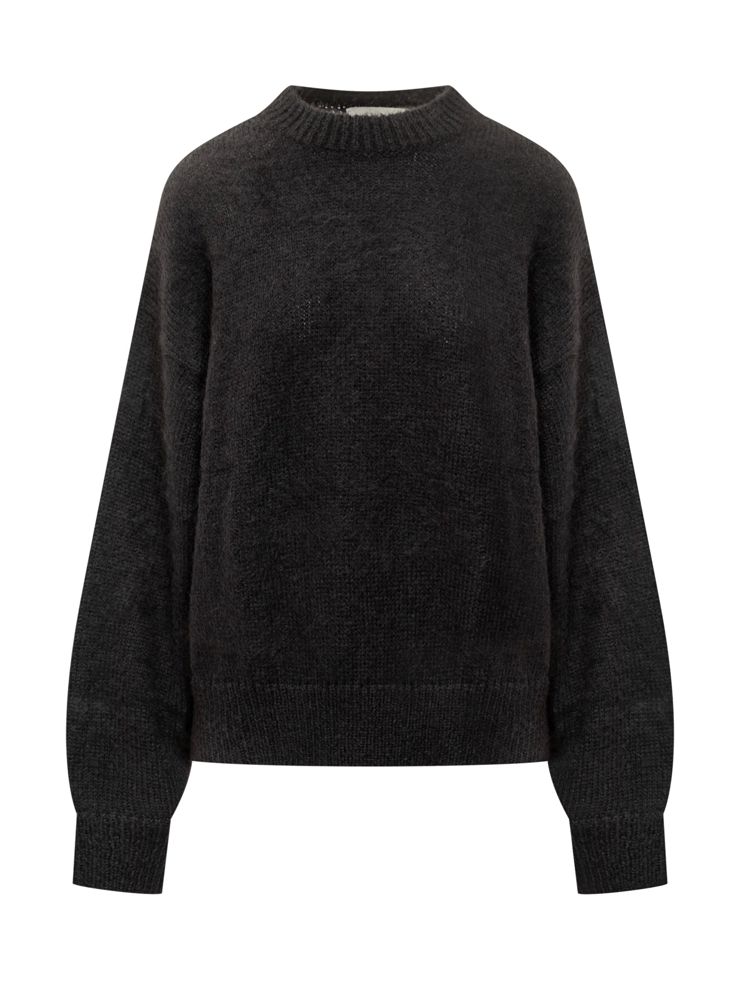 Studio Nicholson black wool sweater with crewneck and relaxed fit.