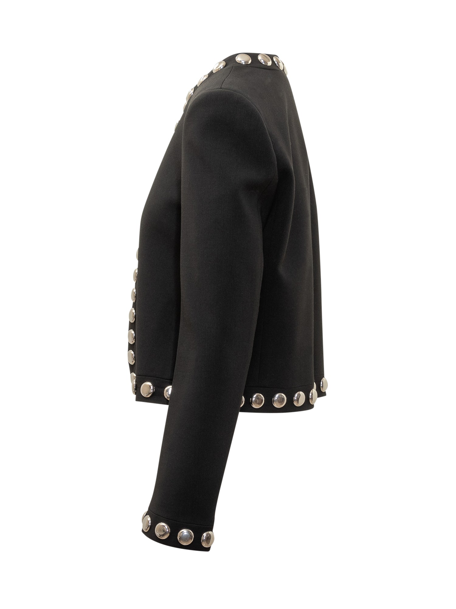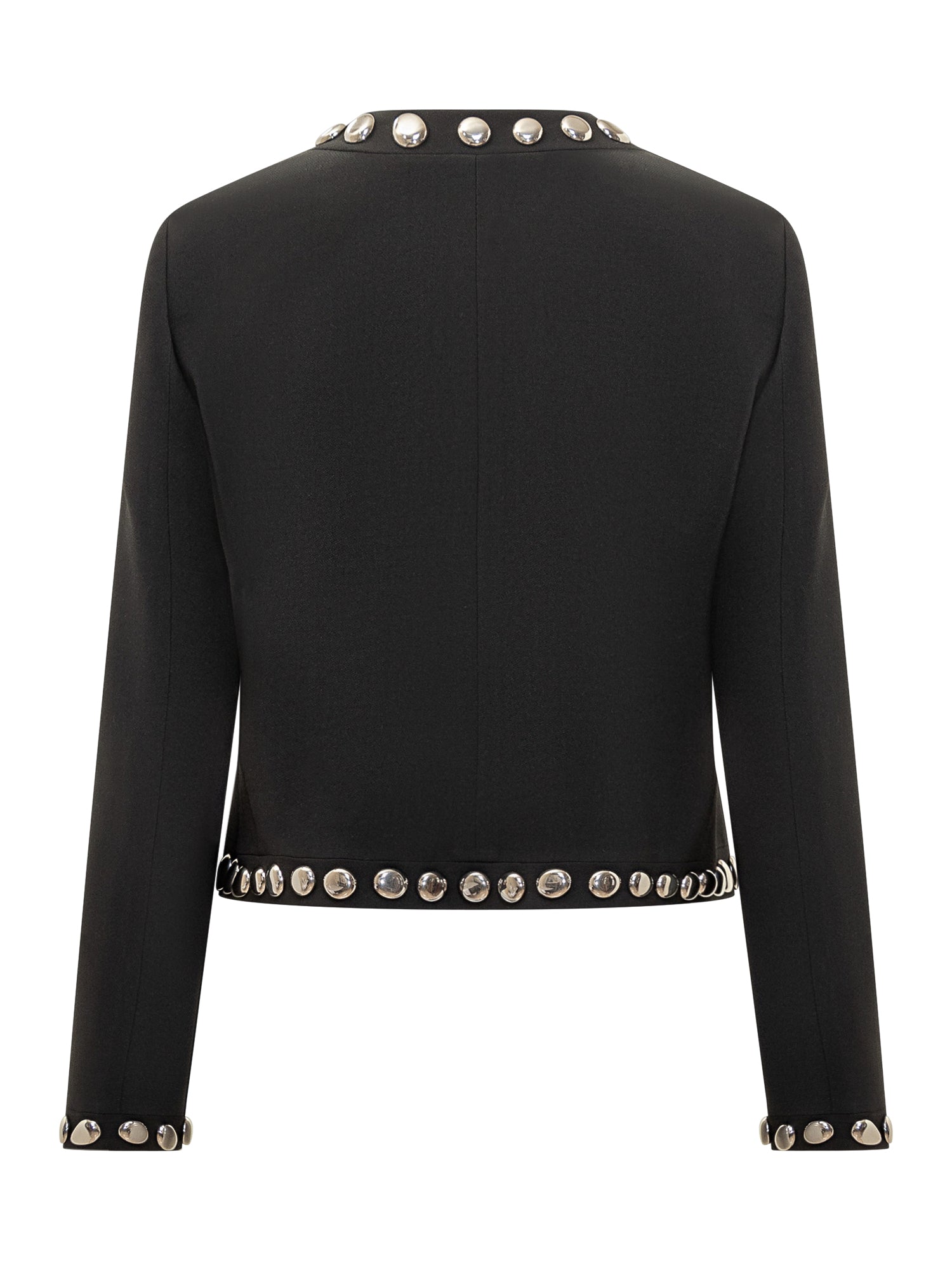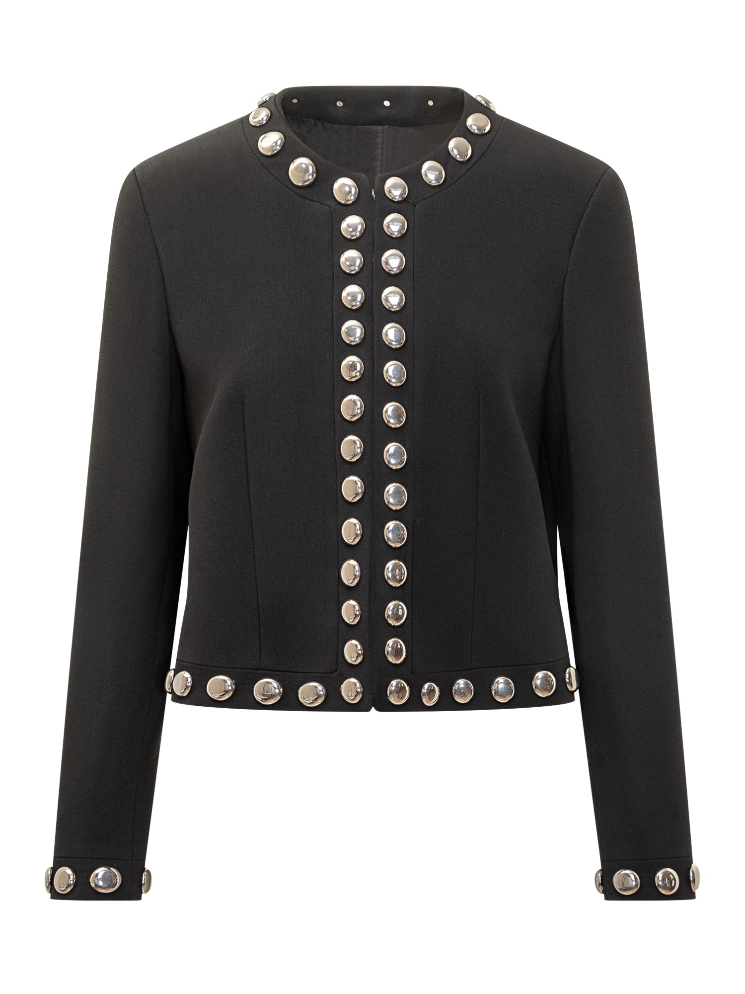 The Seafarer cropped black jacket with silver stud details along neckline, front, cuffs and hem.