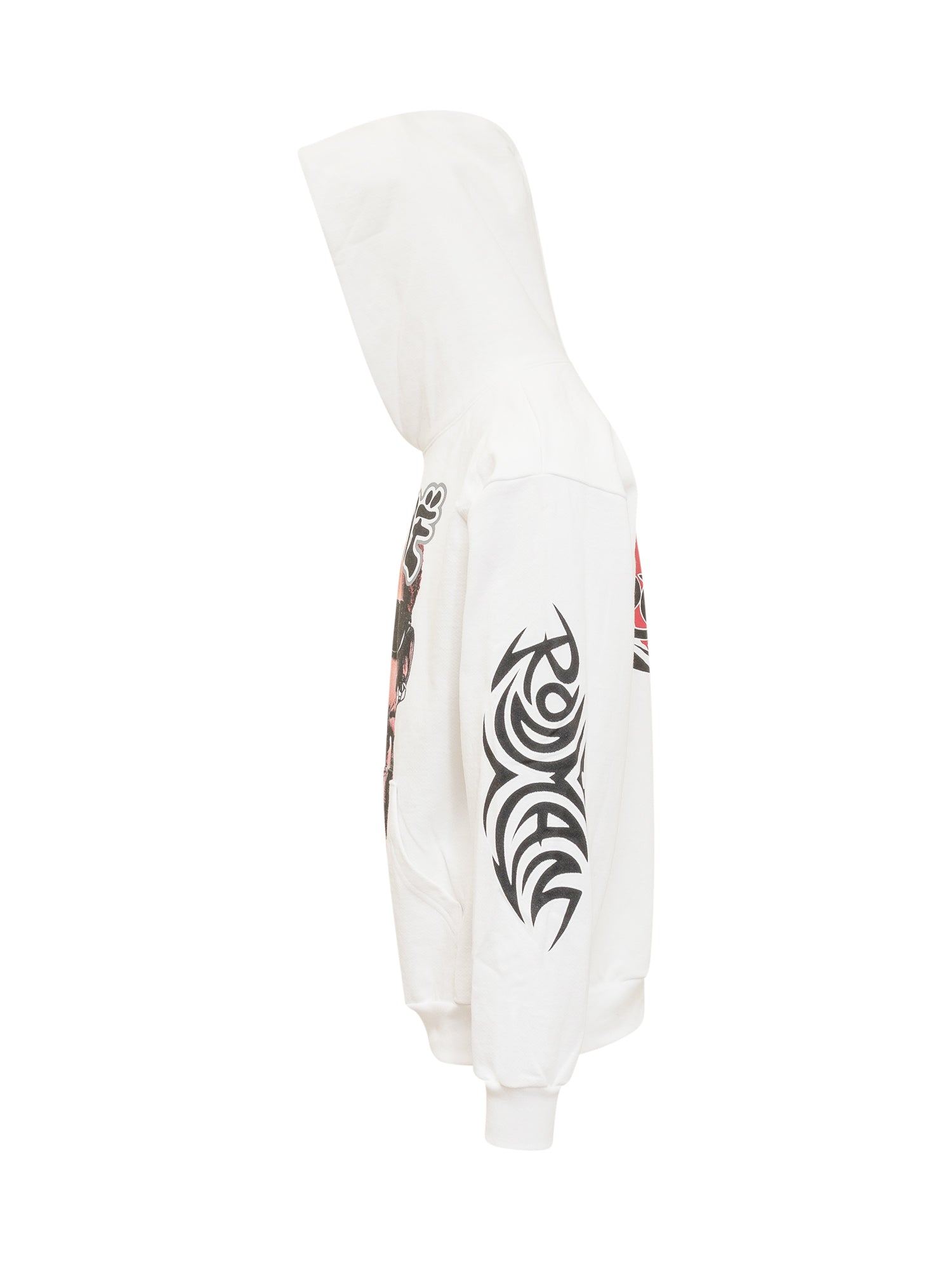 Hoodie. Drawstring hood. Ribbed hem and cuffs. Single pocket on the front. Print on the front. Logo printed on the back and sleeves.