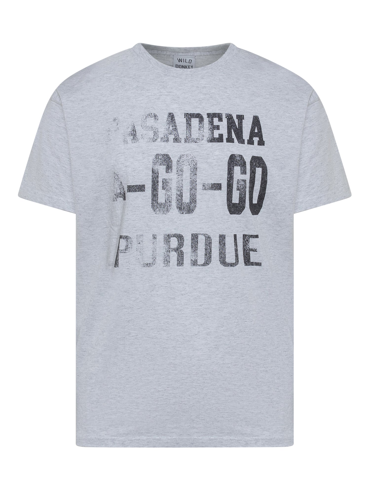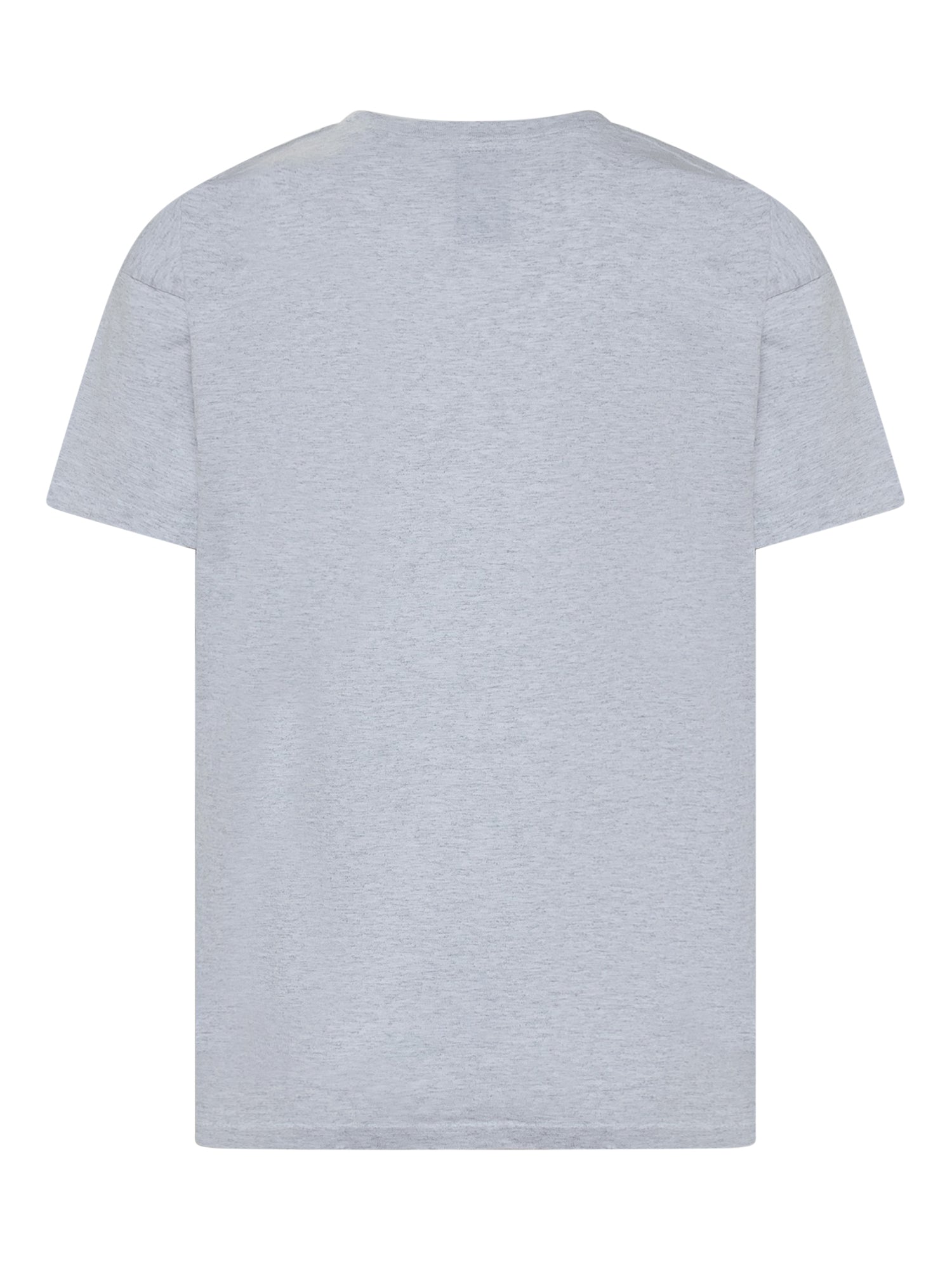 Grey crewneck t-shirt. Print on the front. Ribbed neck.