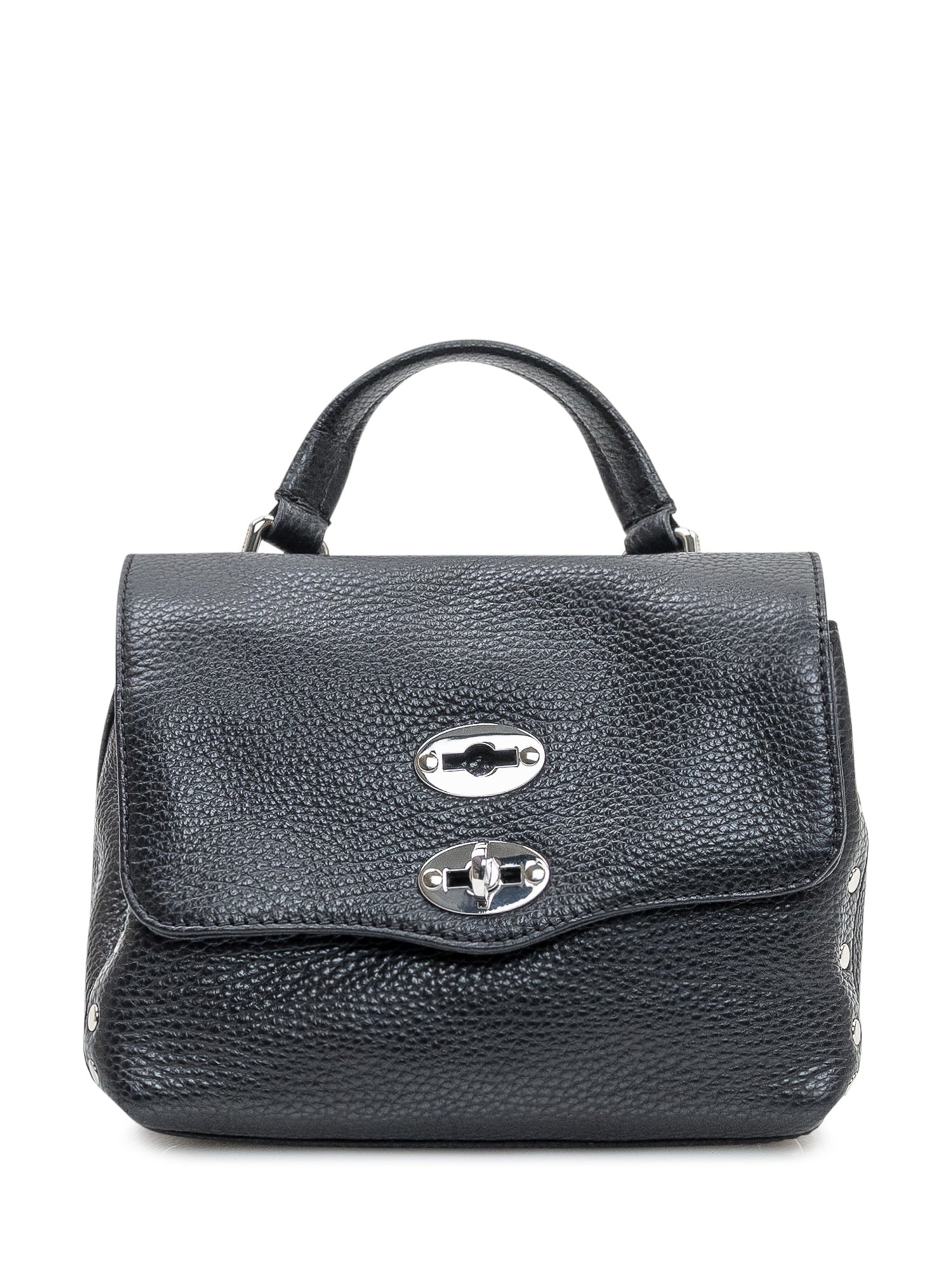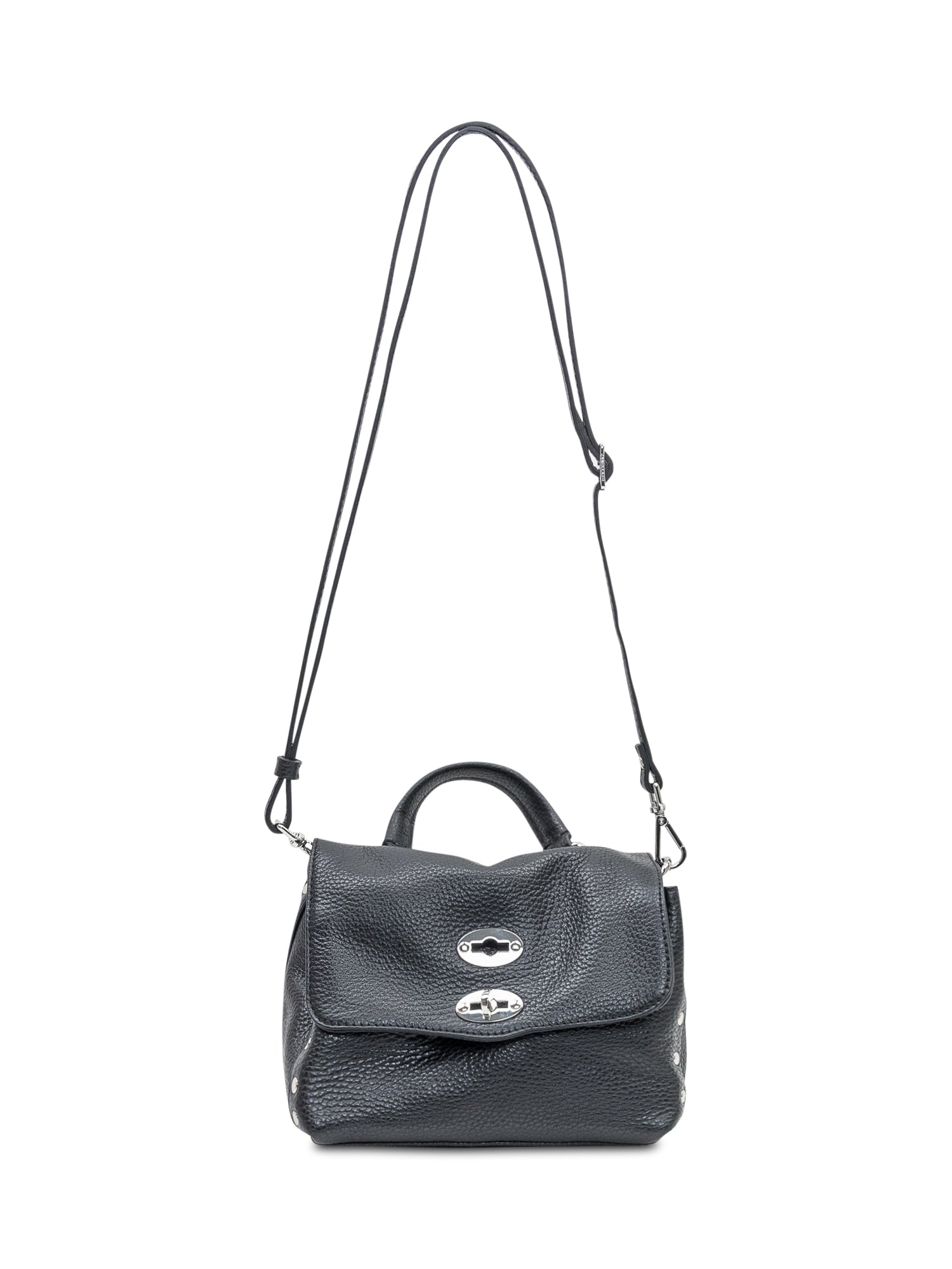 Iconic Zanellato Postina Daily Baby in black hammered leather with double turn-lock closure.