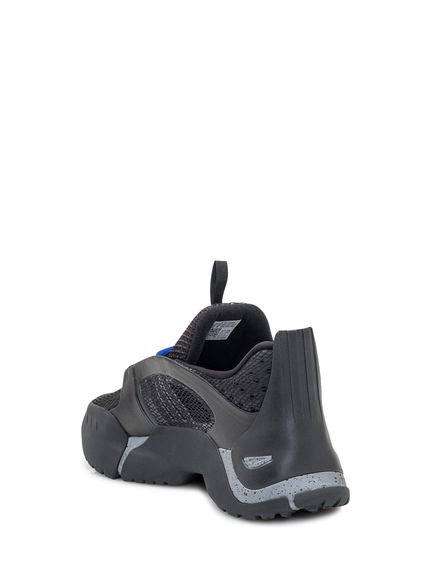 Black sneaker made of technical fabric and rubber. Lace-up closure.