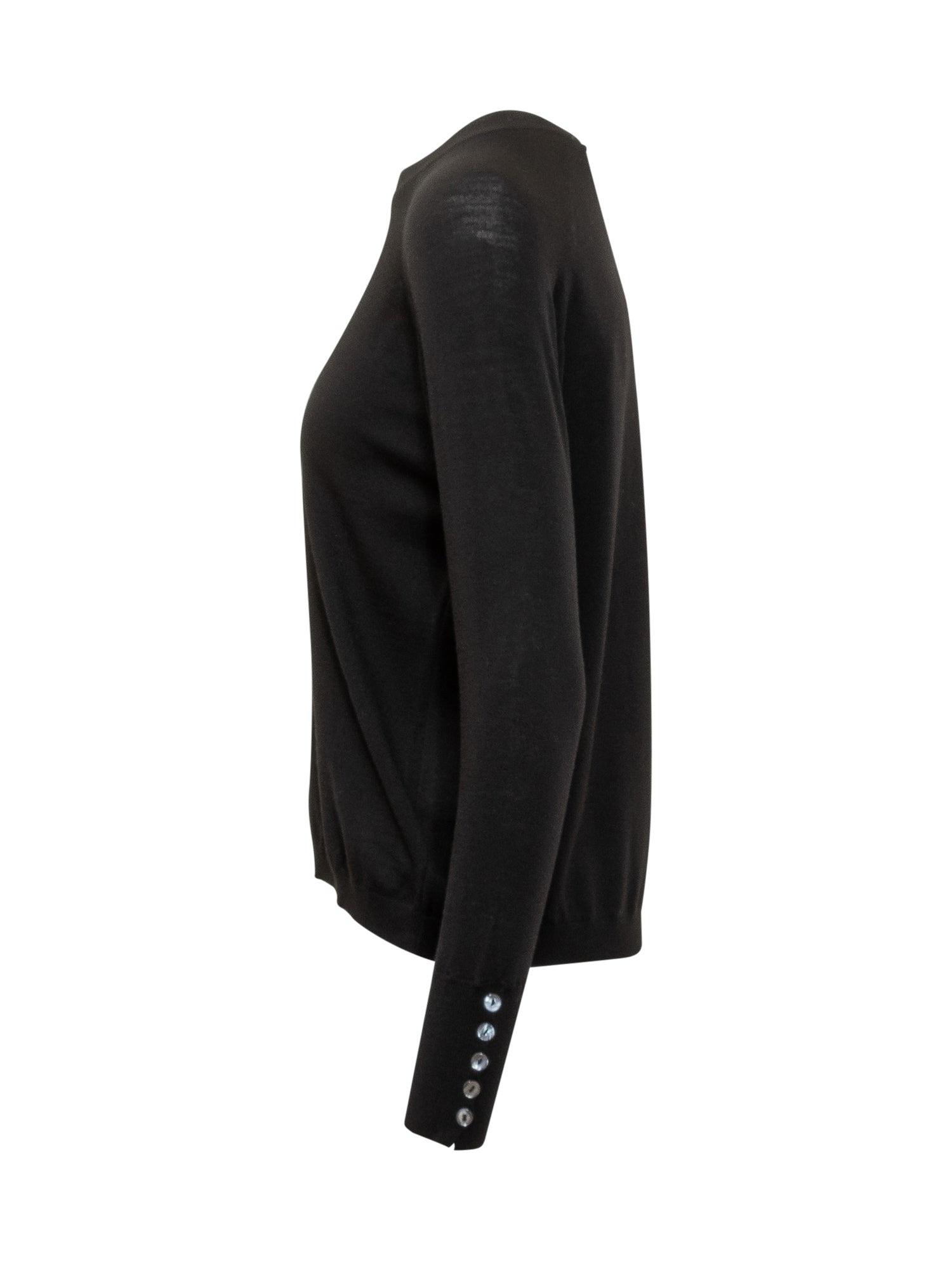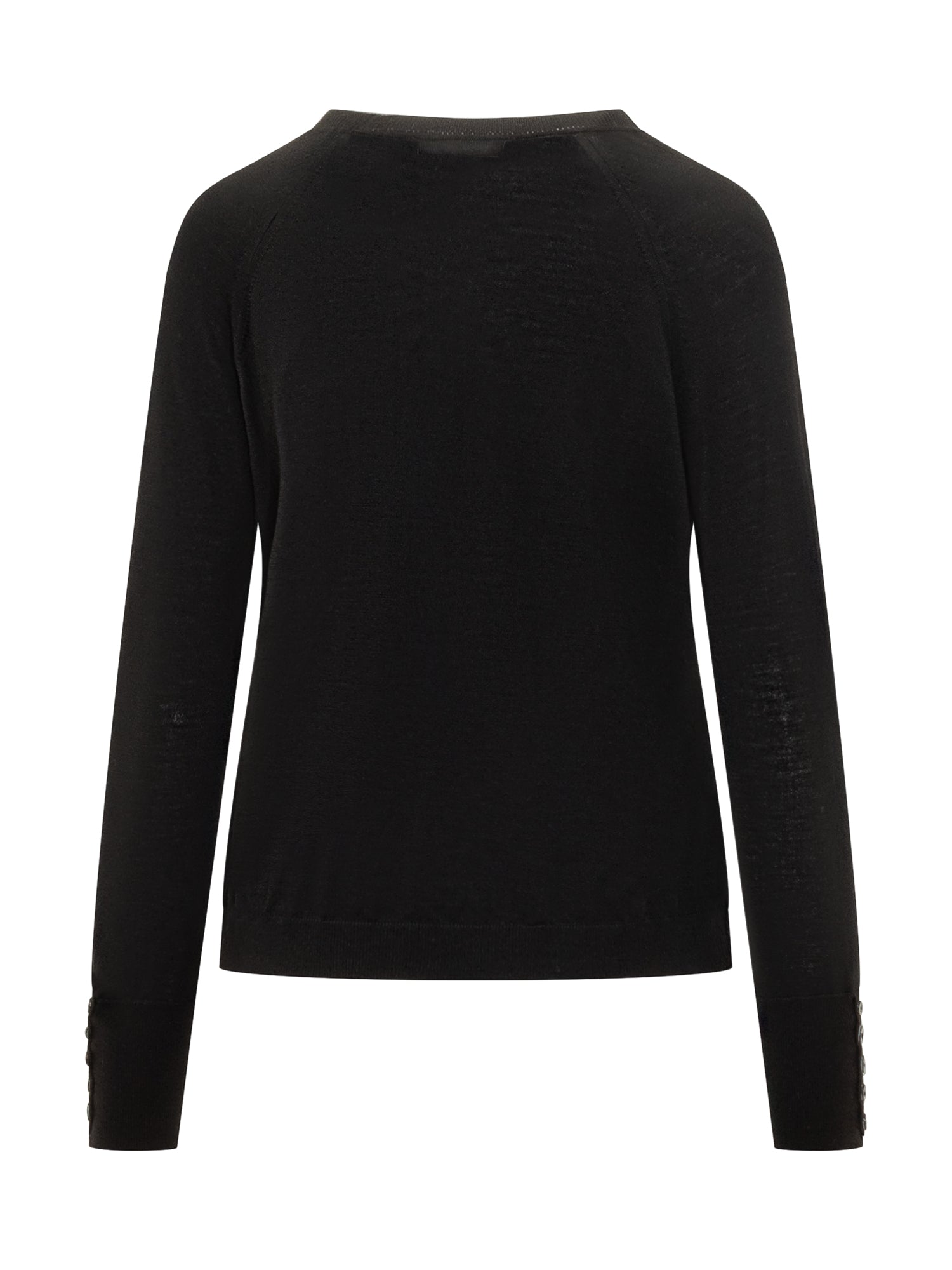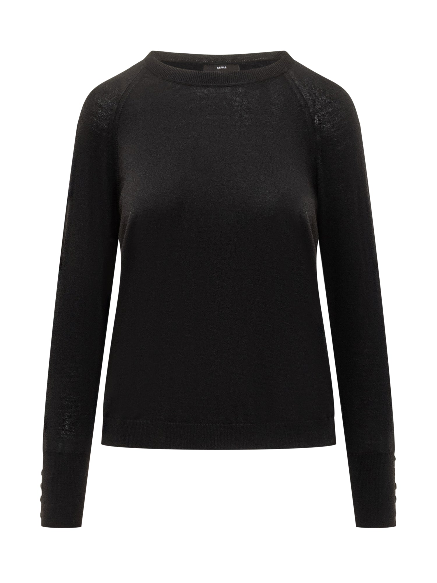 Alpha Studio black fine wool sweater featuring long sleeves and round neck. Clean design with subtle details for an essential.
