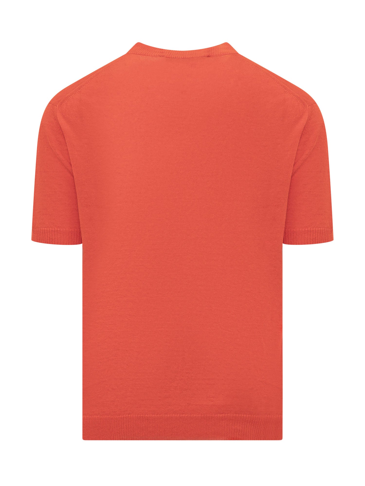 Linen-blend short-sleeved sweater. Crew neck. Ribbed hems. Logo patch on front.